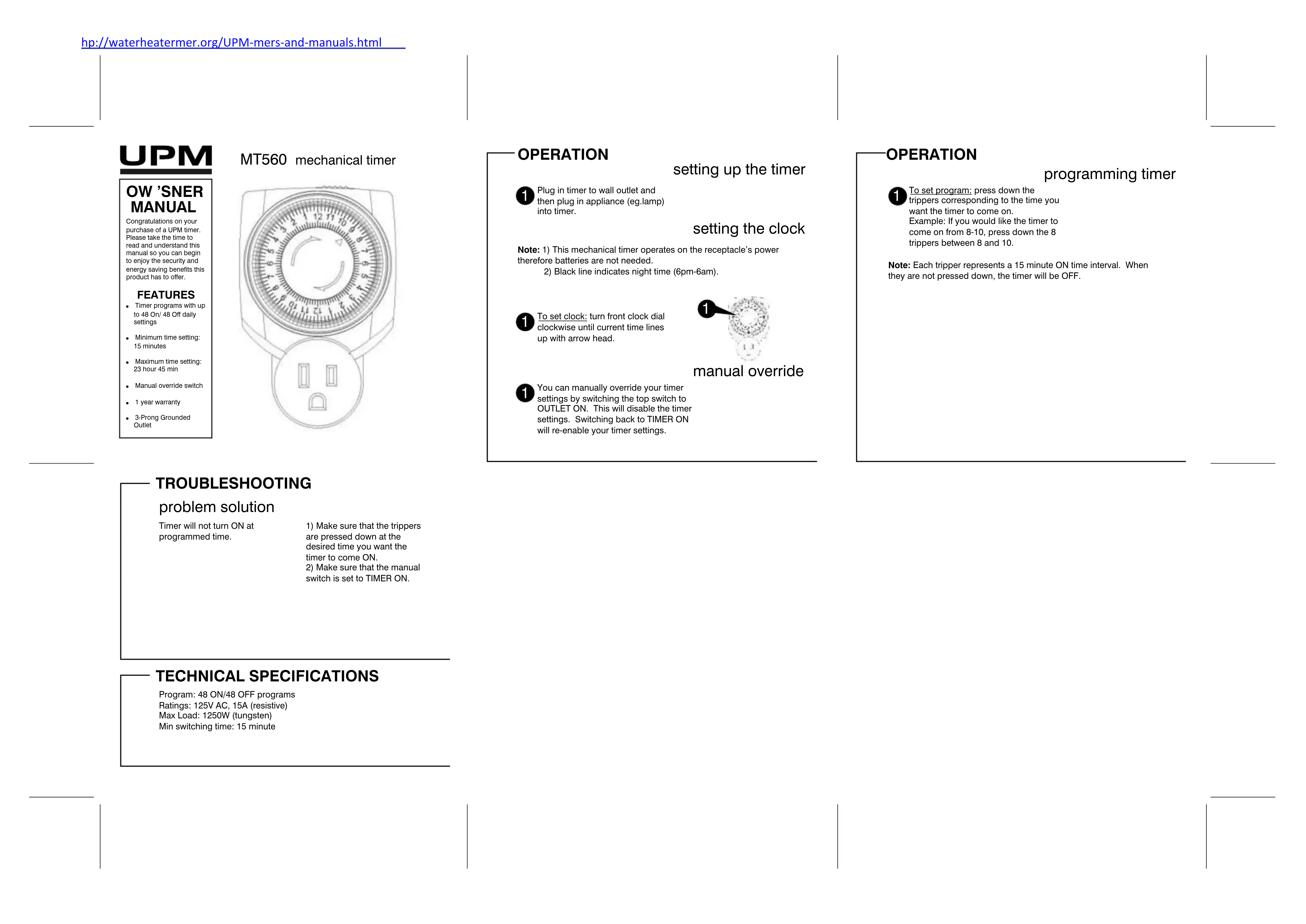 Félicitations avec votre achat d'une minuterie UPM. Veuillez prendre le temps de lire et comprendre ce