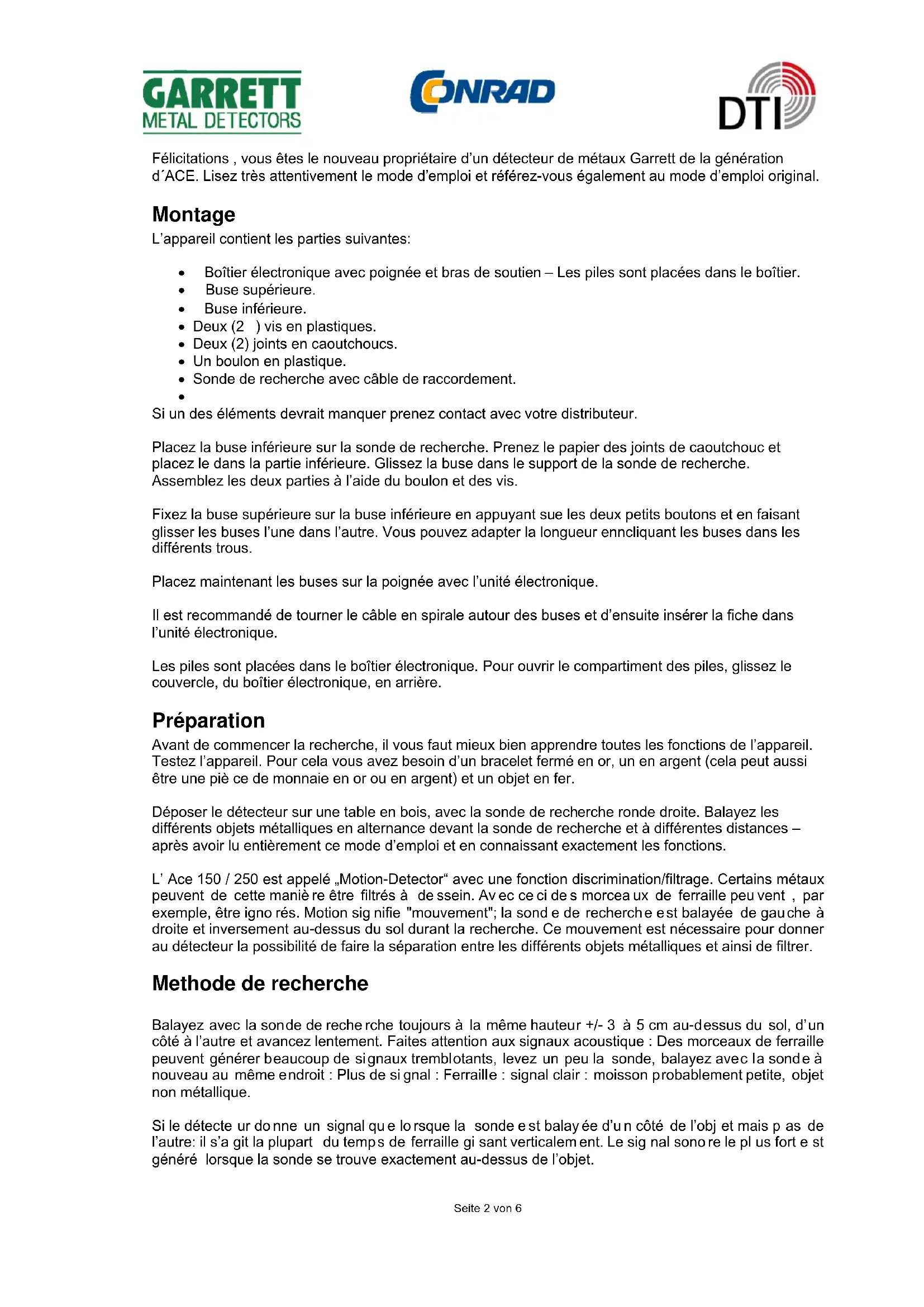 Retrouvez gratuitement la notice de l'appareil Euro Ace GARRETT au format PDF.