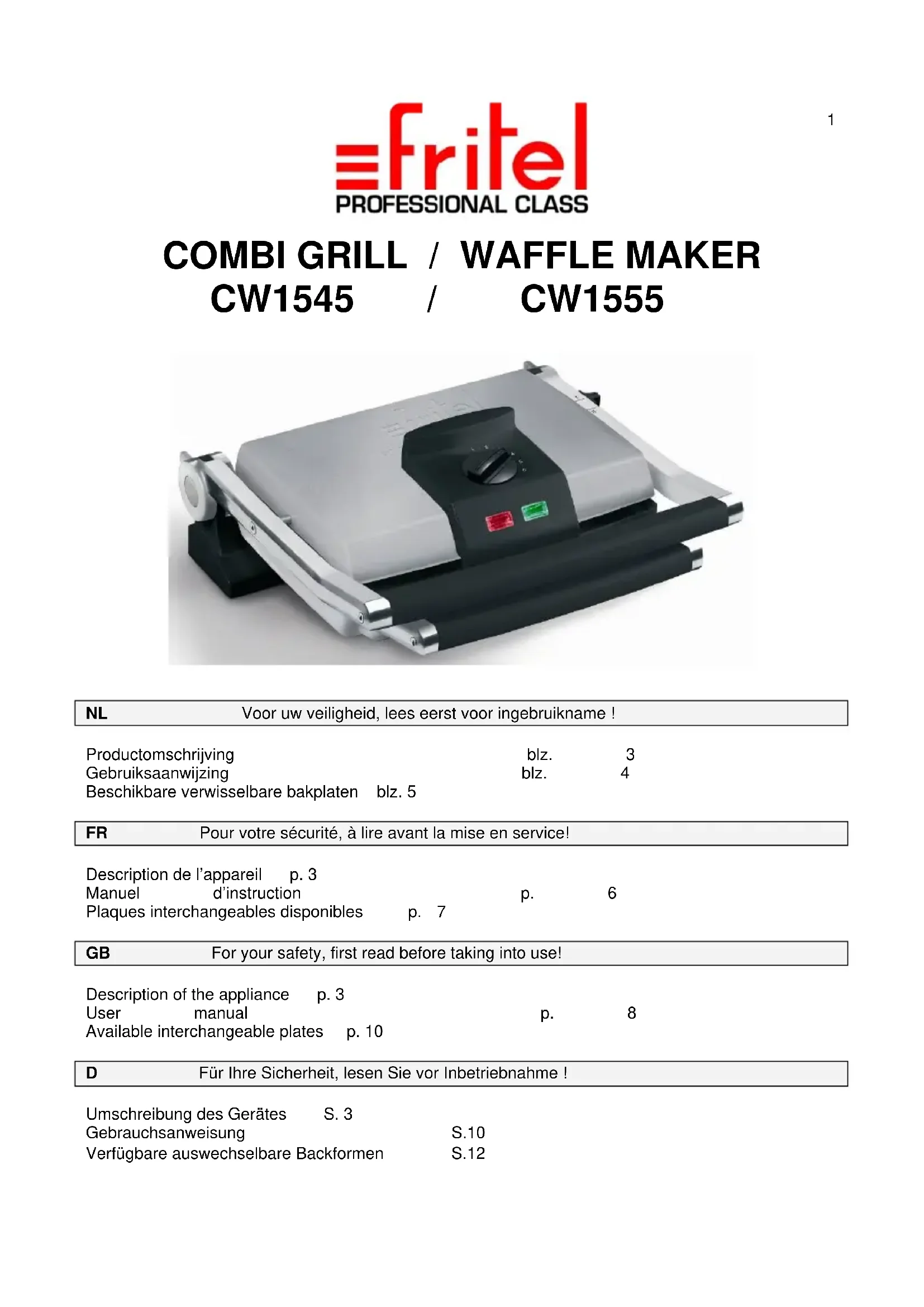 CW 1555 - Gaufrier FRITEL - Notice d'utilisation et mode d'emploi gratuit