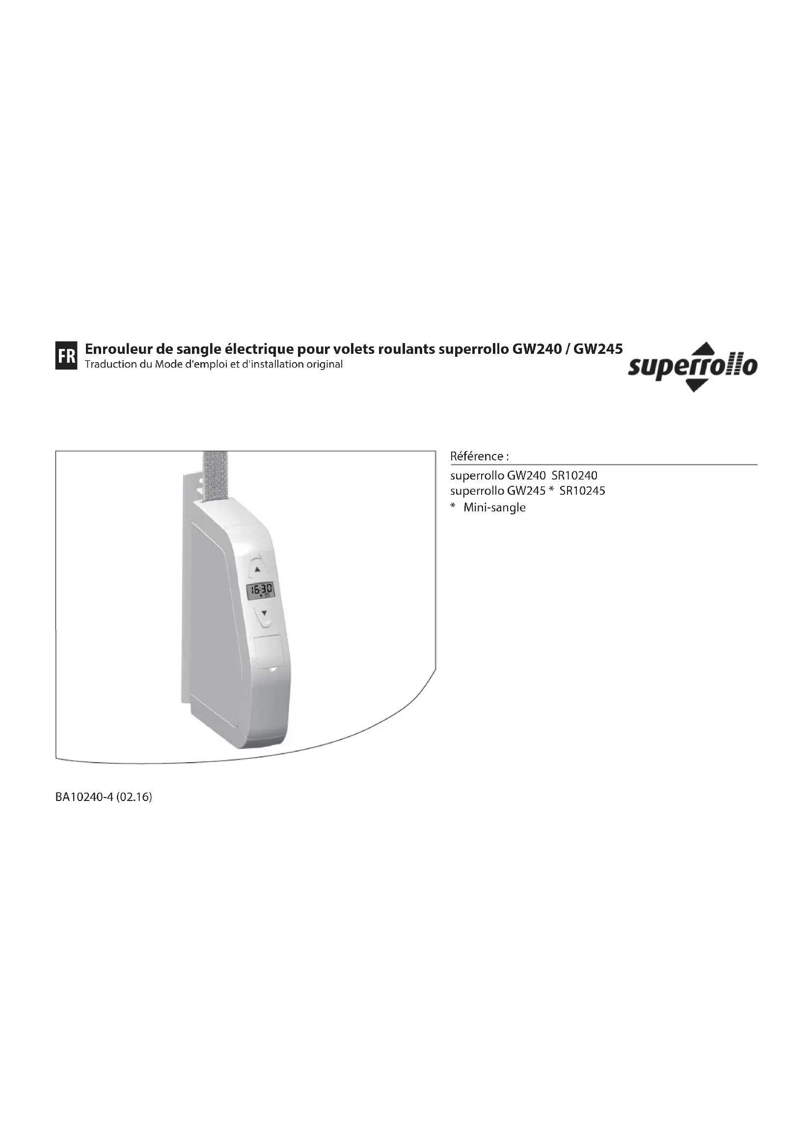 ...vous décrit la pose, le raccordement électrique et l'utilisation de votre enrouleur de sangle pour volets roulants superrollo GW240 / GW245.