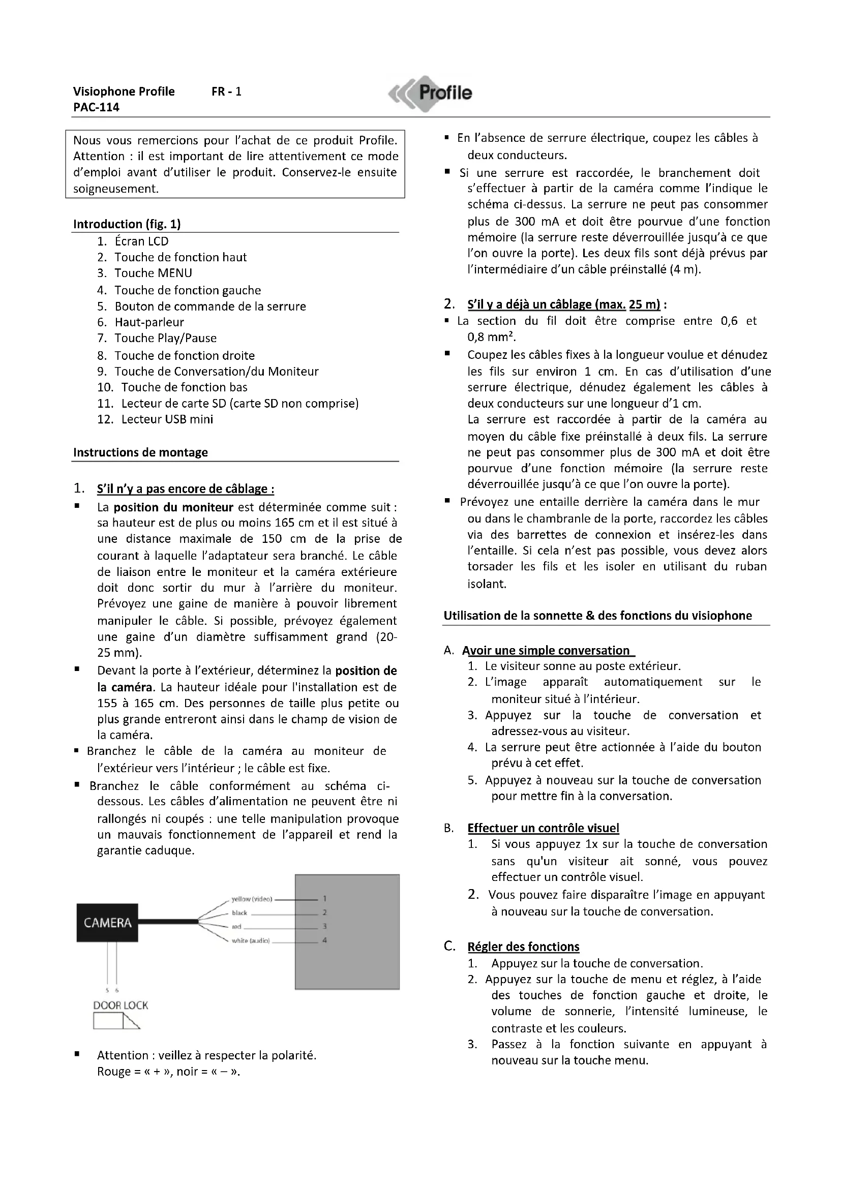 Nous vous remercions pour l'achat de ce produit Profile. ATTENTION : il est important de lire attentivement ce mode d'emploi avant d'utiliser le produit. Conservez-le ensuite soigneusement.