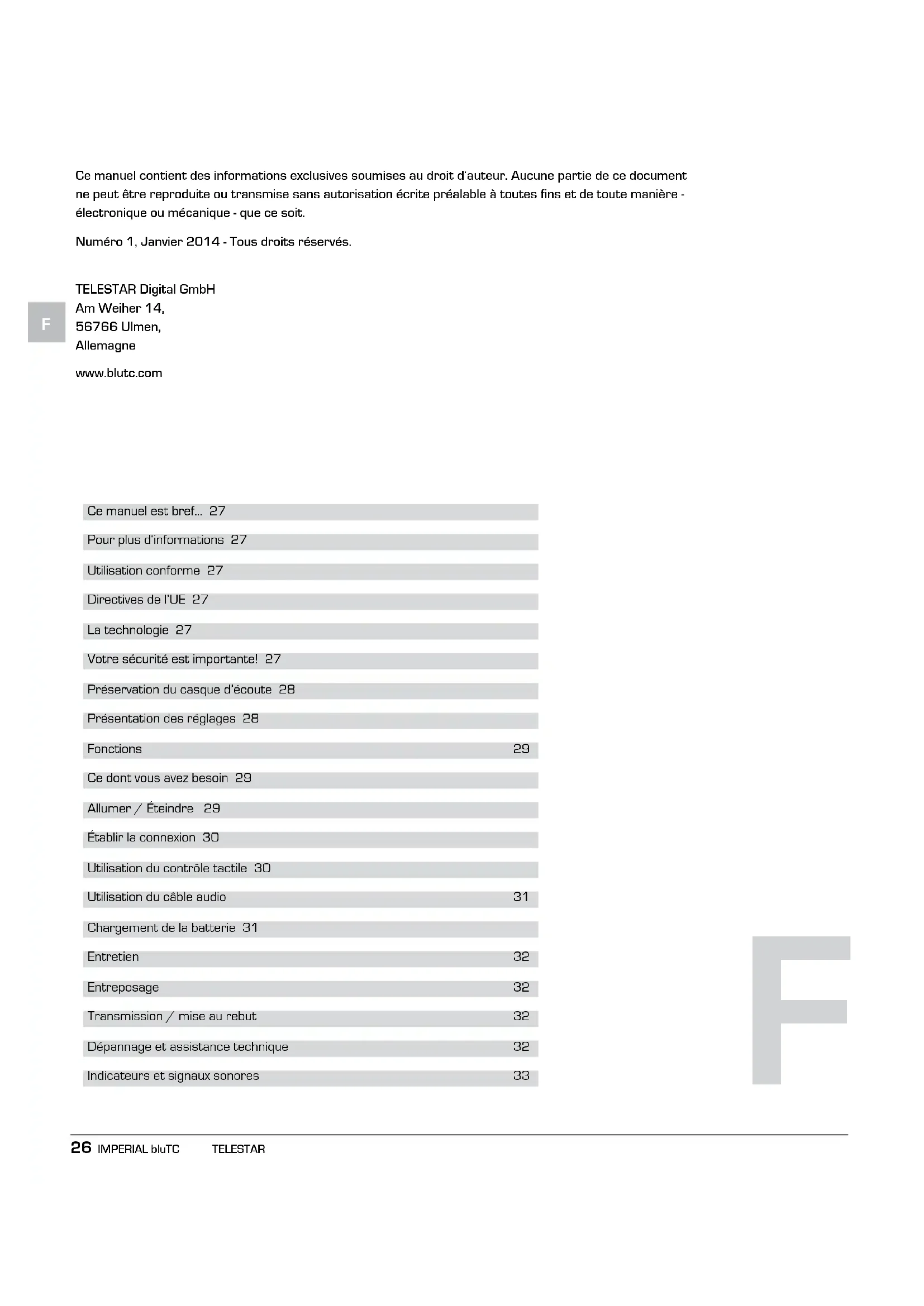 Pour de l'information supplémentaire mise à jour sur ce casque d'écoute et sur nos autres produits, visitez les sites web www.blutc.com et www.telestar.de.