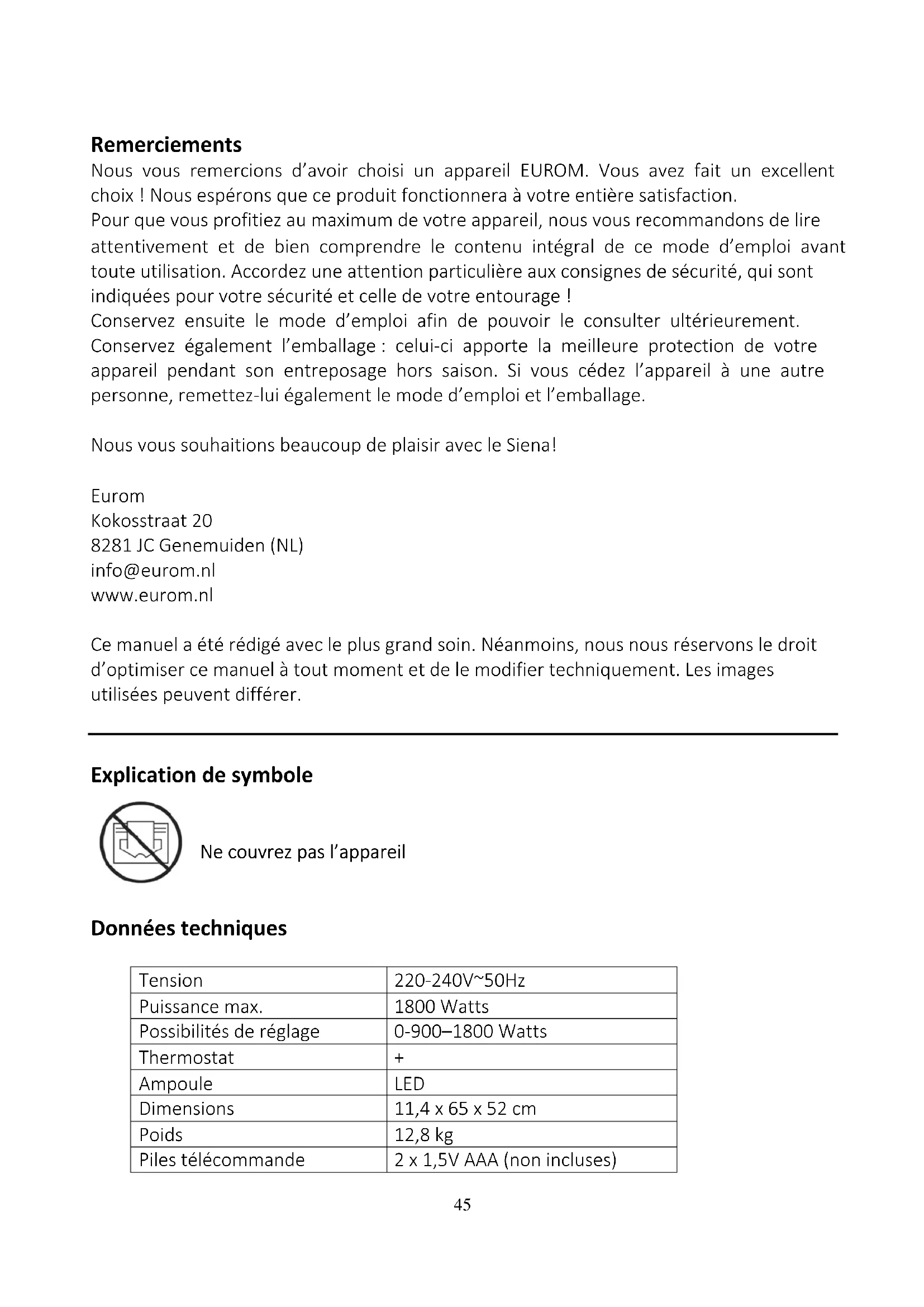 Siena - Cheminée Eurom - Notice d'utilisation et mode d'emploi gratuit