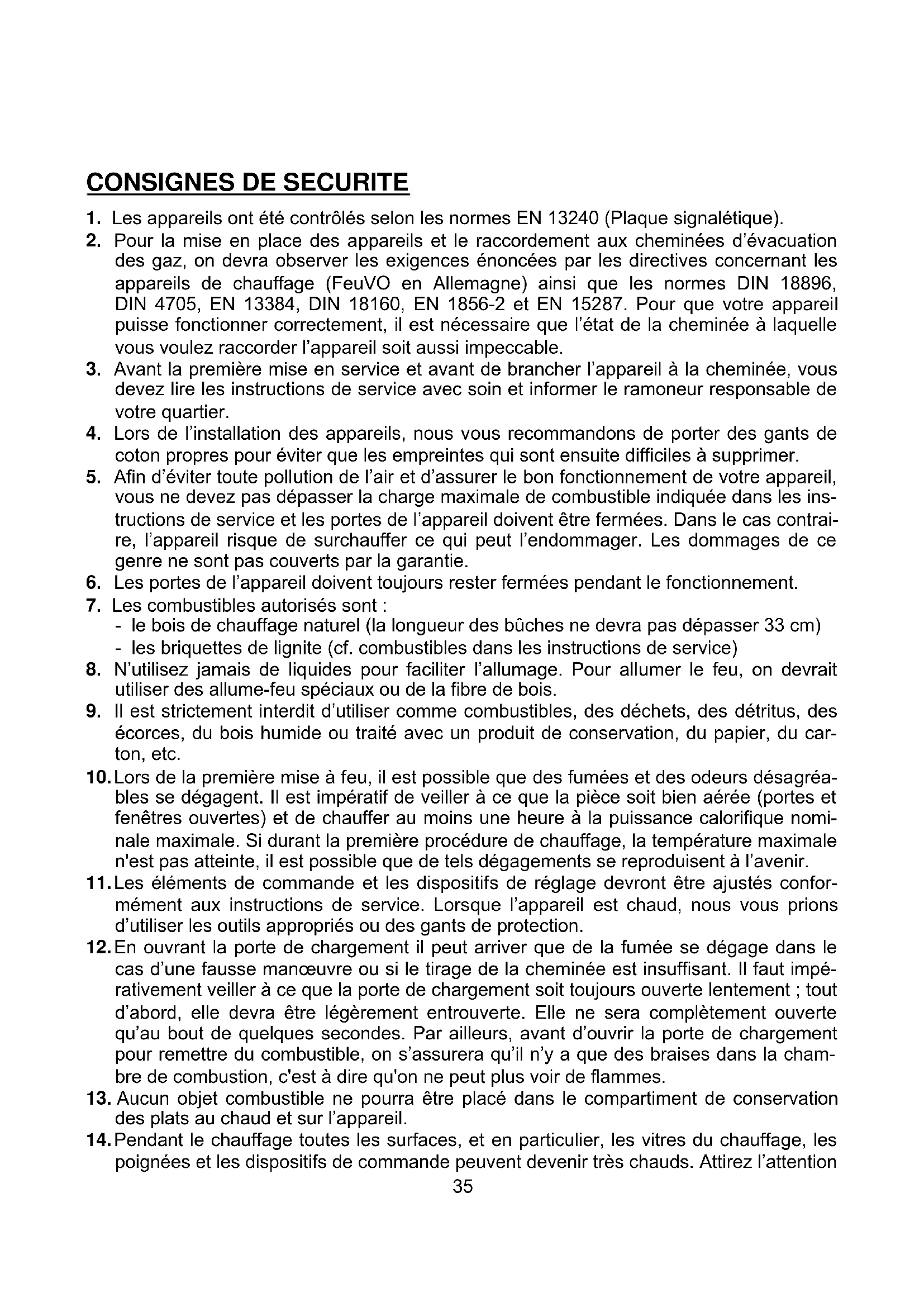 9. Il est strictement interdit d’utiliser comme combustibles, des déchets, des détritus, des