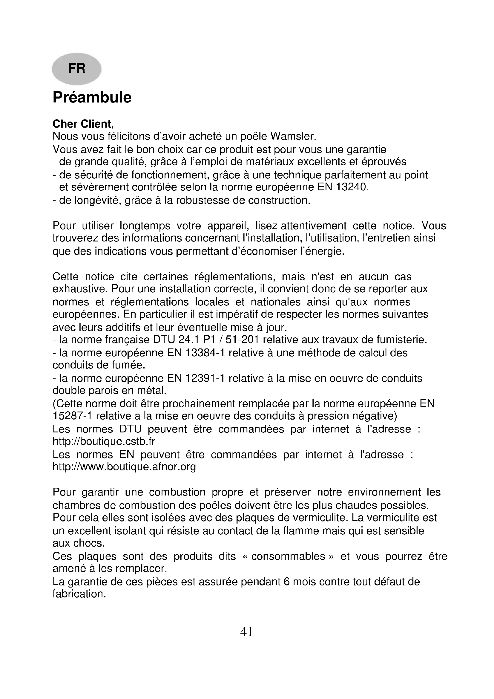 Nous yous felicitons d'avoir acheté un poèle Wamsler.