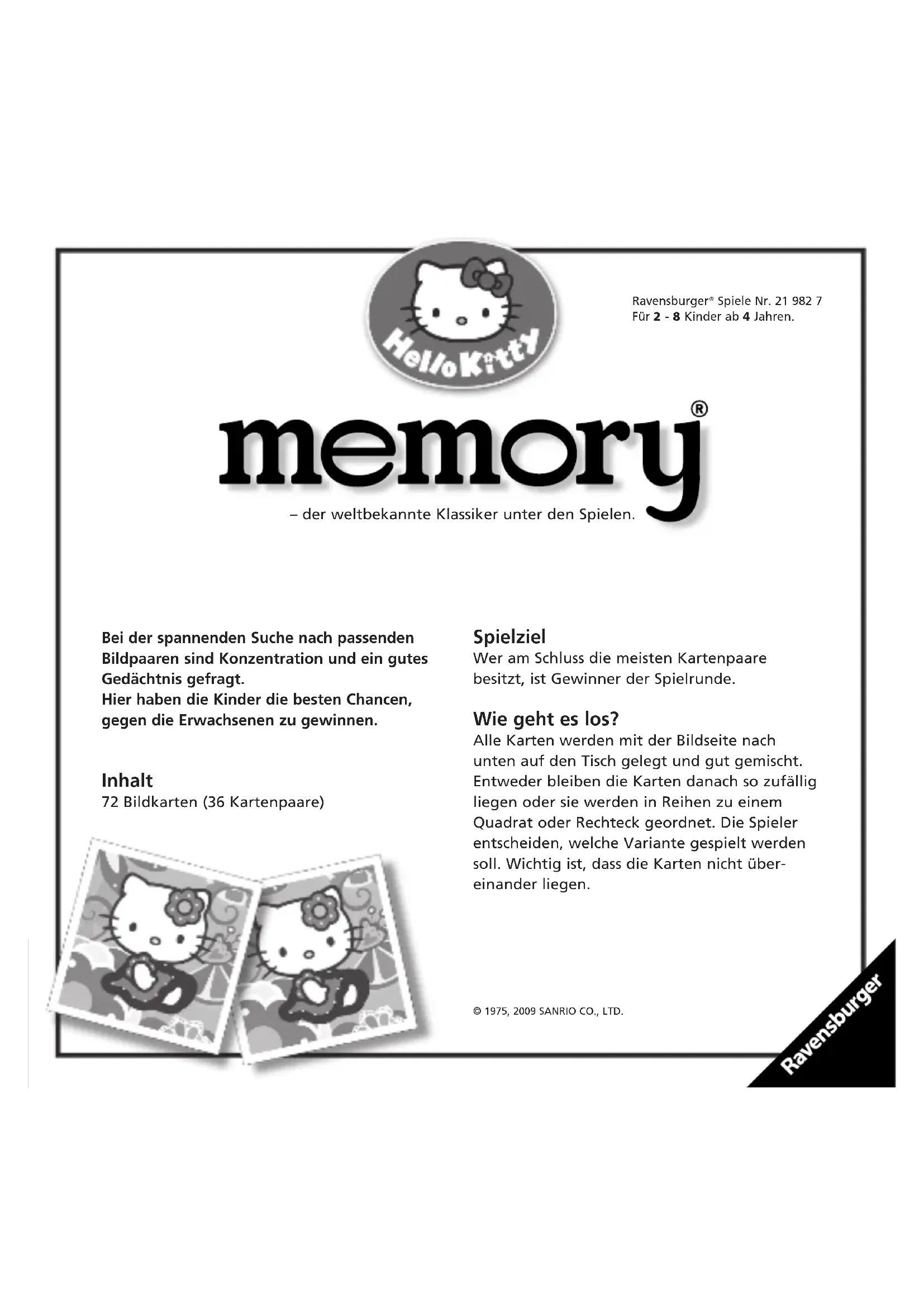 Hello Kitty Memory - Jeu de société RAVENSBURGER - Notice d'utilisation et mode d'emploi gratuit