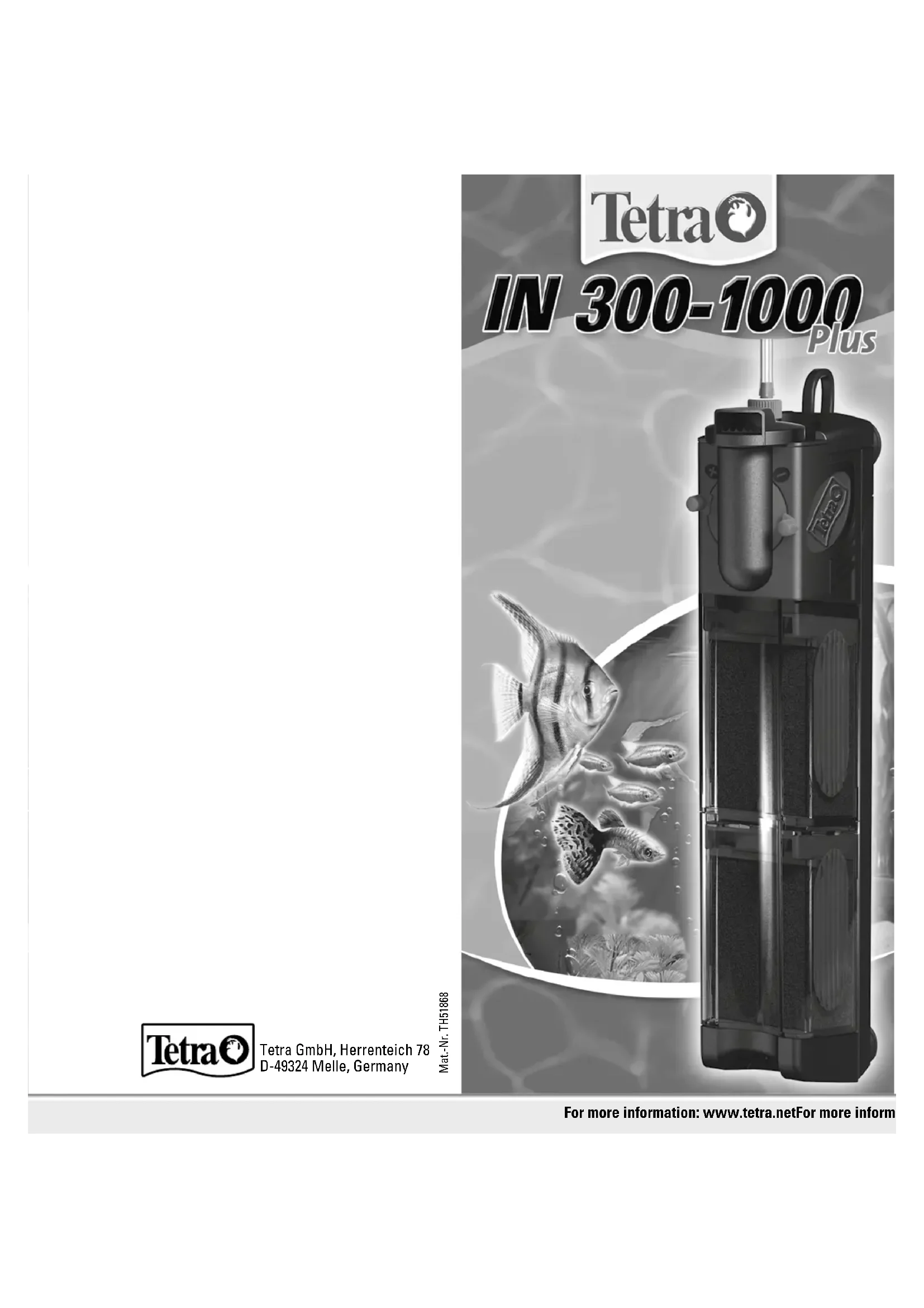 IN 400 plus - Filtre pour aquarium TETRA - Notice d'utilisation et mode d'emploi gratuit