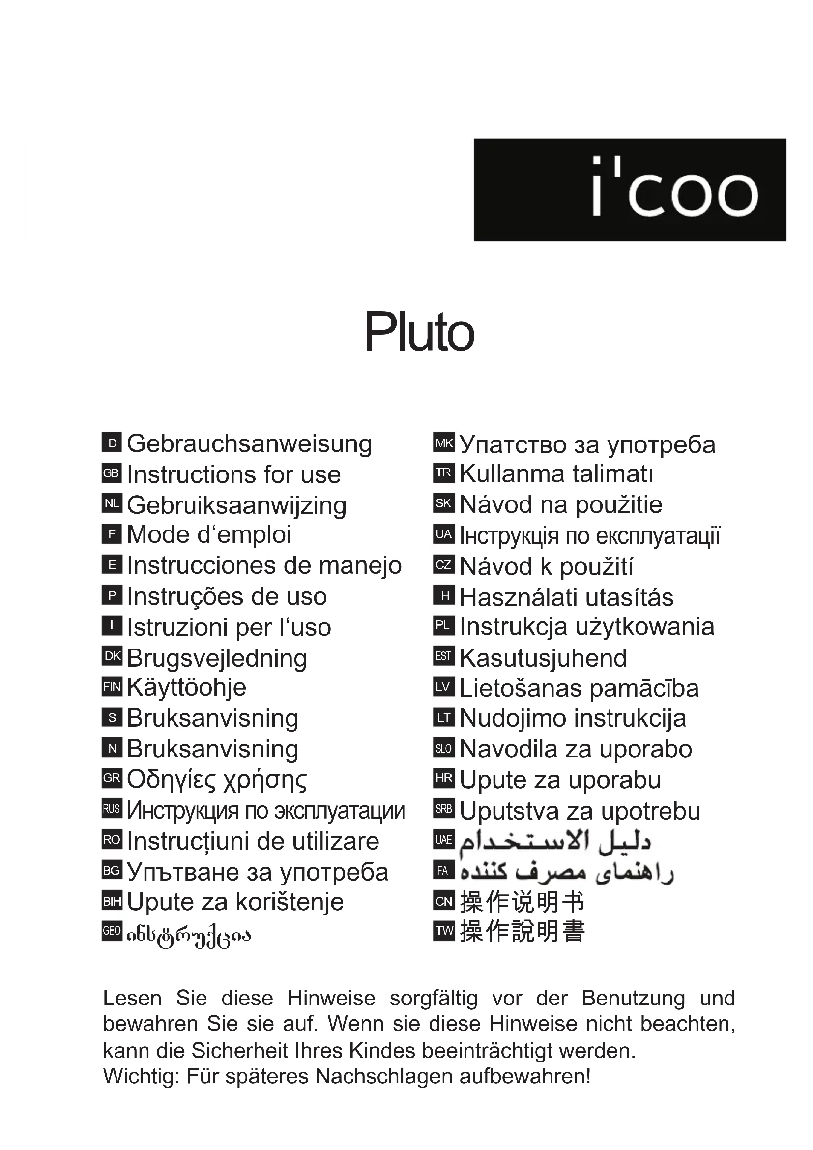 Pluto - Poussette i'coo - Notice d'utilisation et mode d'emploi gratuit