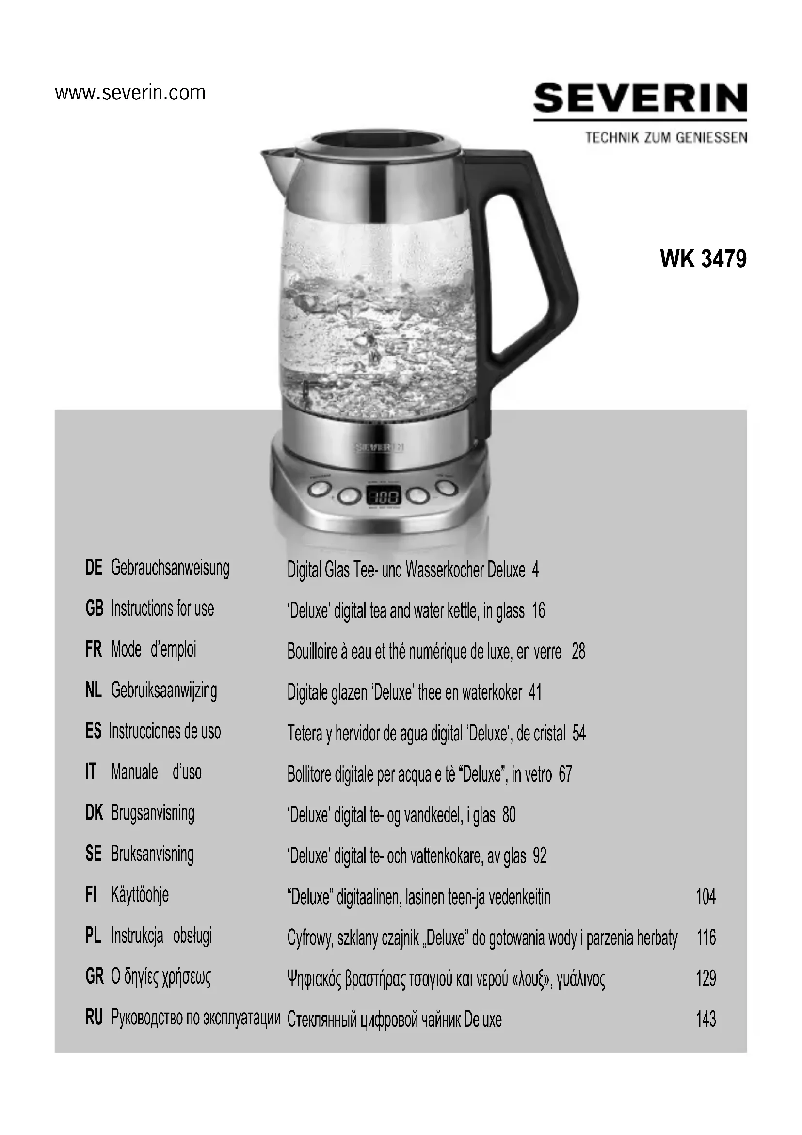Retrouvez gratuitement la notice de l'appareil WK 3479 SEVERIN au format PDF.