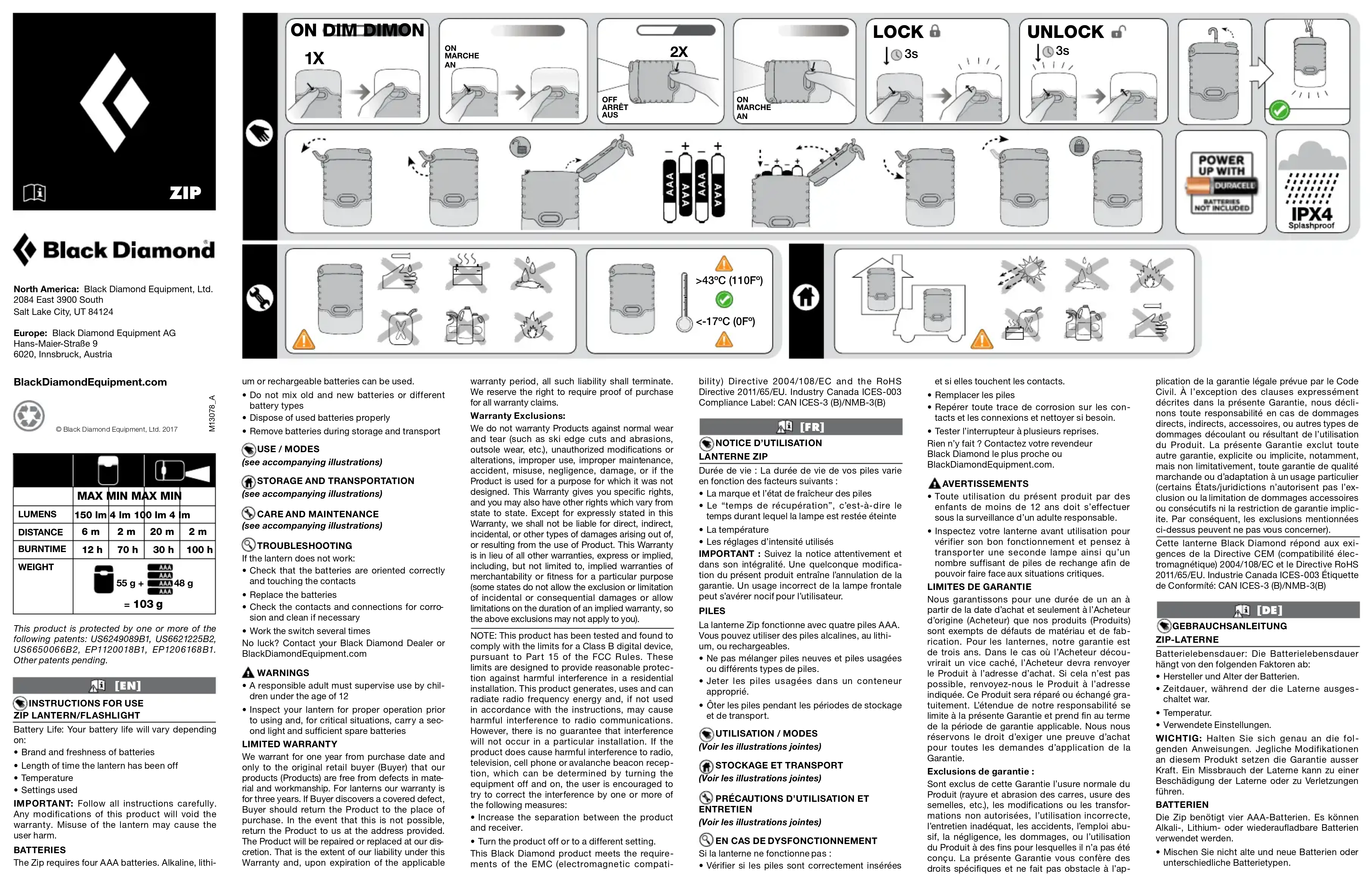 Retrouvez gratuitement la notice de l'appareil Zip Lantern Black Diamond au format PDF.