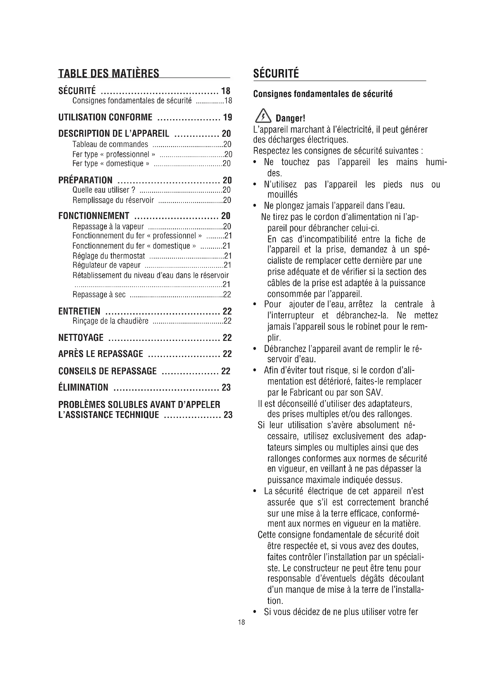 - Fonctionnement du fer « domestique » p. 21