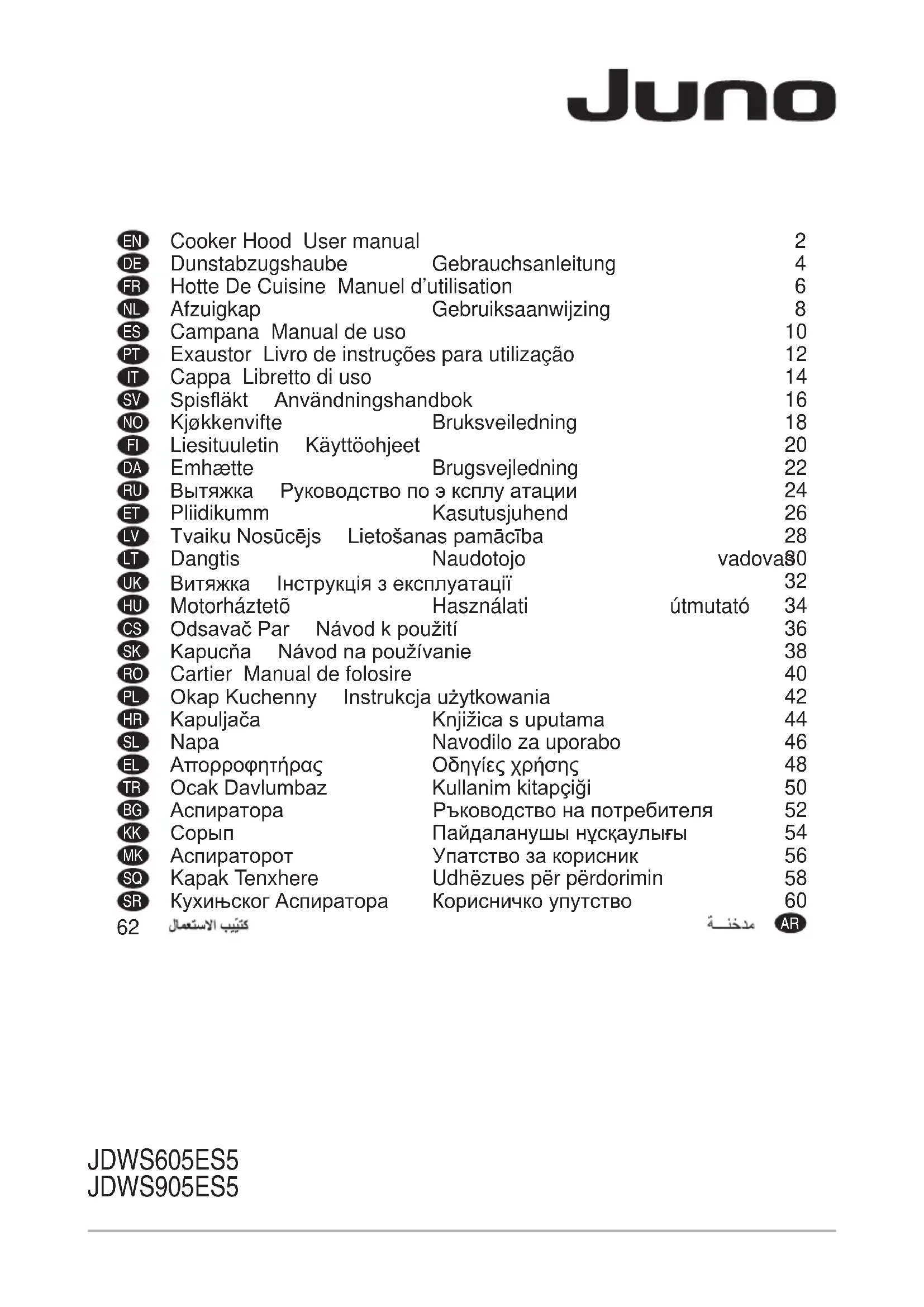 JDWS905E5 - Hotte JUNO - Notice d'utilisation et mode d'emploi gratuit