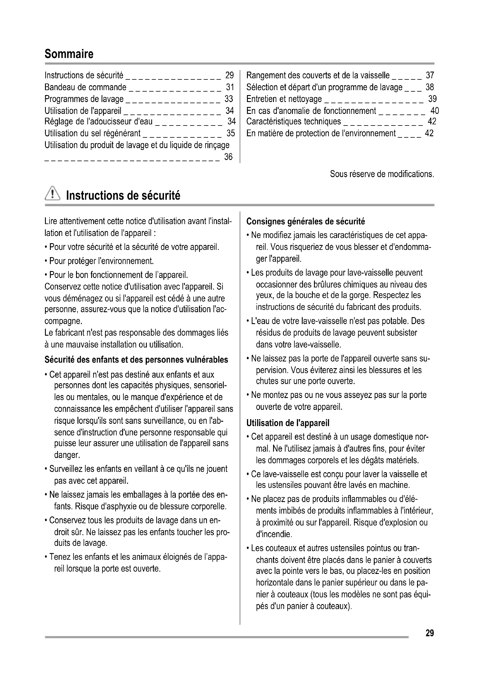 - L'eau de votre lave-vaisselle n'est pas potable. Des résidus de produits de lavage peuvent subsister dans votre lave-vaisselle.