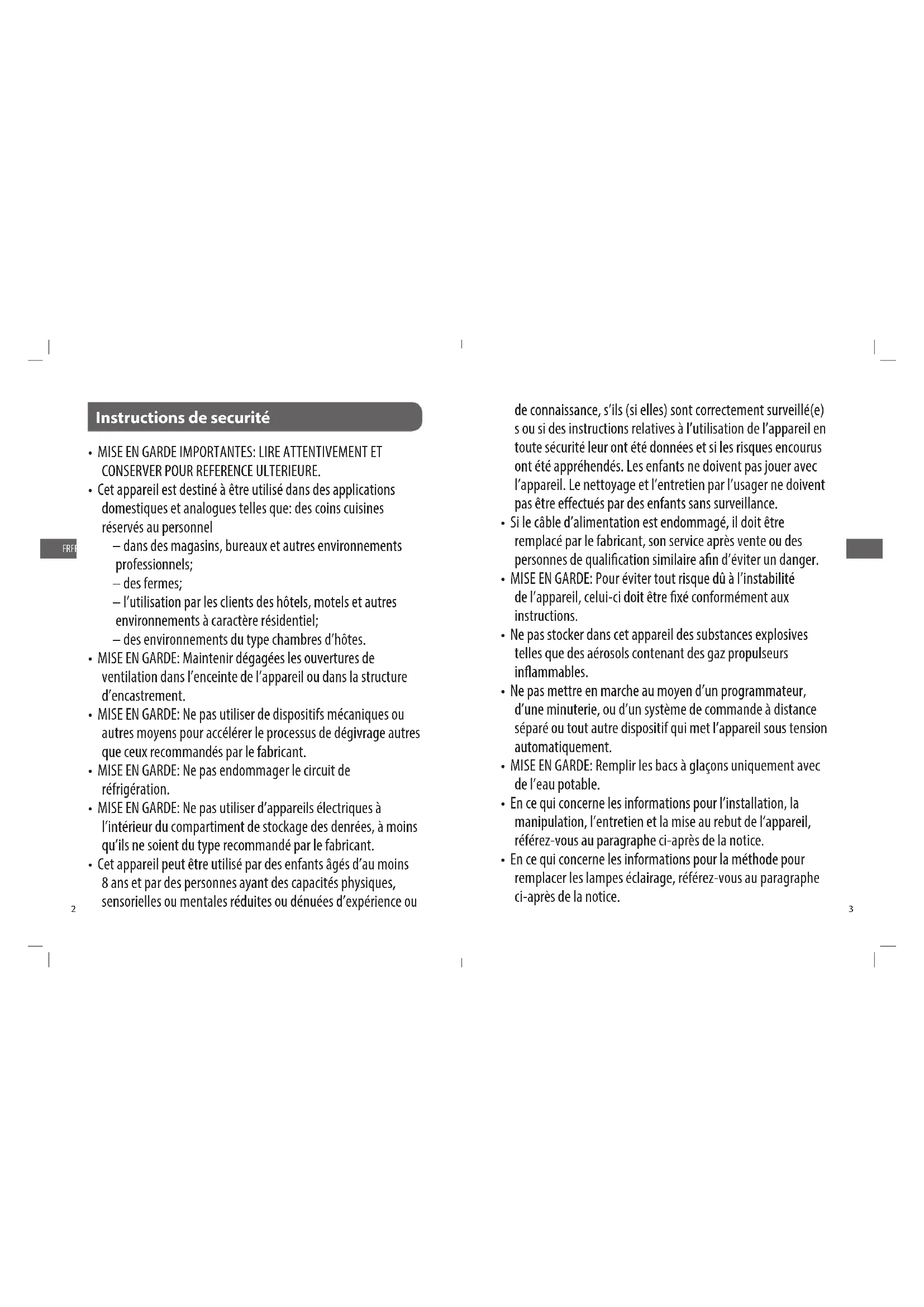 - Cet appareil est destiné à être utilisé dans des applications domestiques et analogues telles que: des coins cuisines réservés au personnel – dans des magasins, bureaux et autres environnements professionnels; – des fermes; – l’utilisation par les clients des hôtels, motels et autres environnements à caractère résidentiel; – des environnements du type chambres d’hôtes
