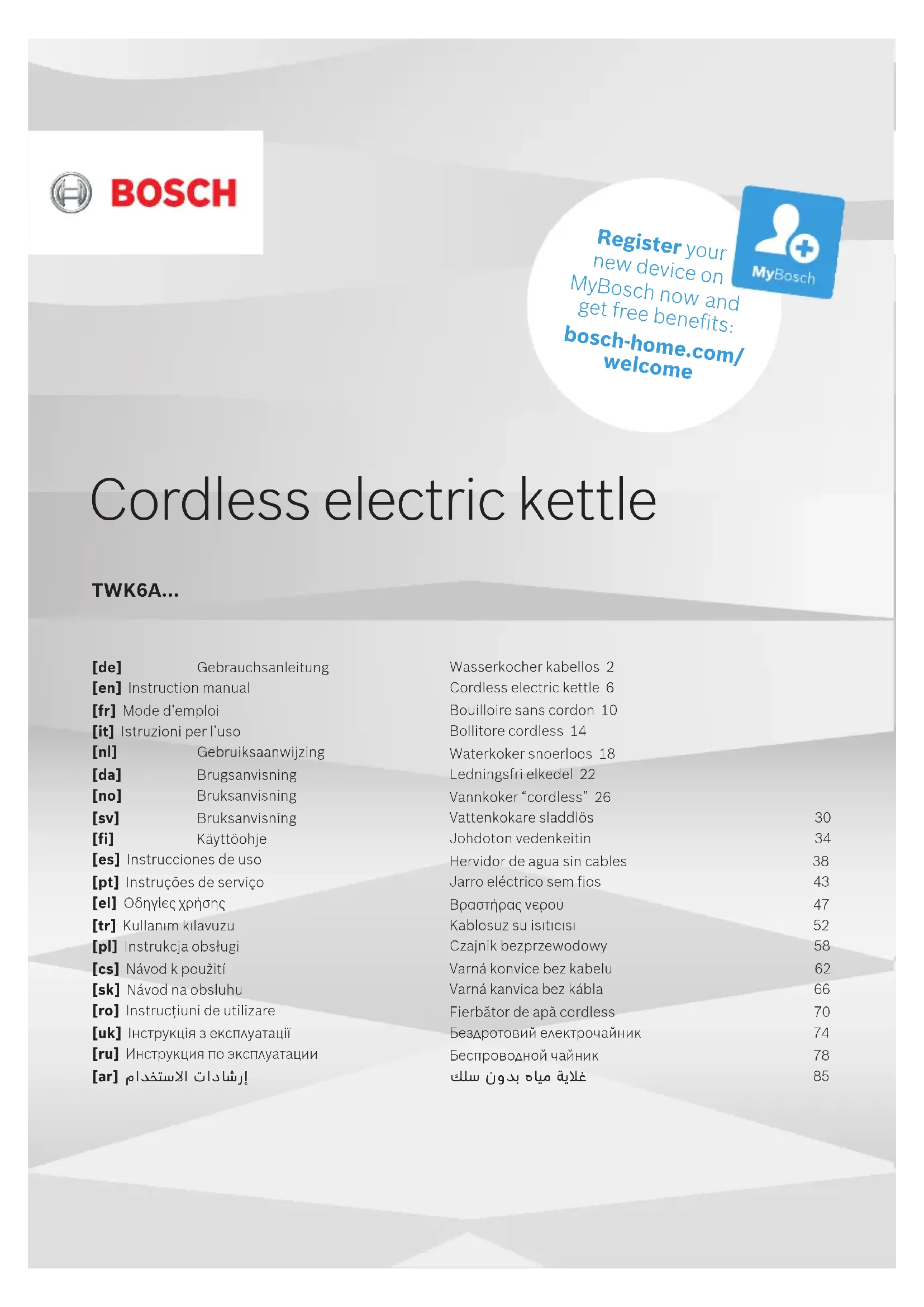 Retrouvez gratuitement la notice de l'appareil TWK6A011 BOSCH au format PDF.