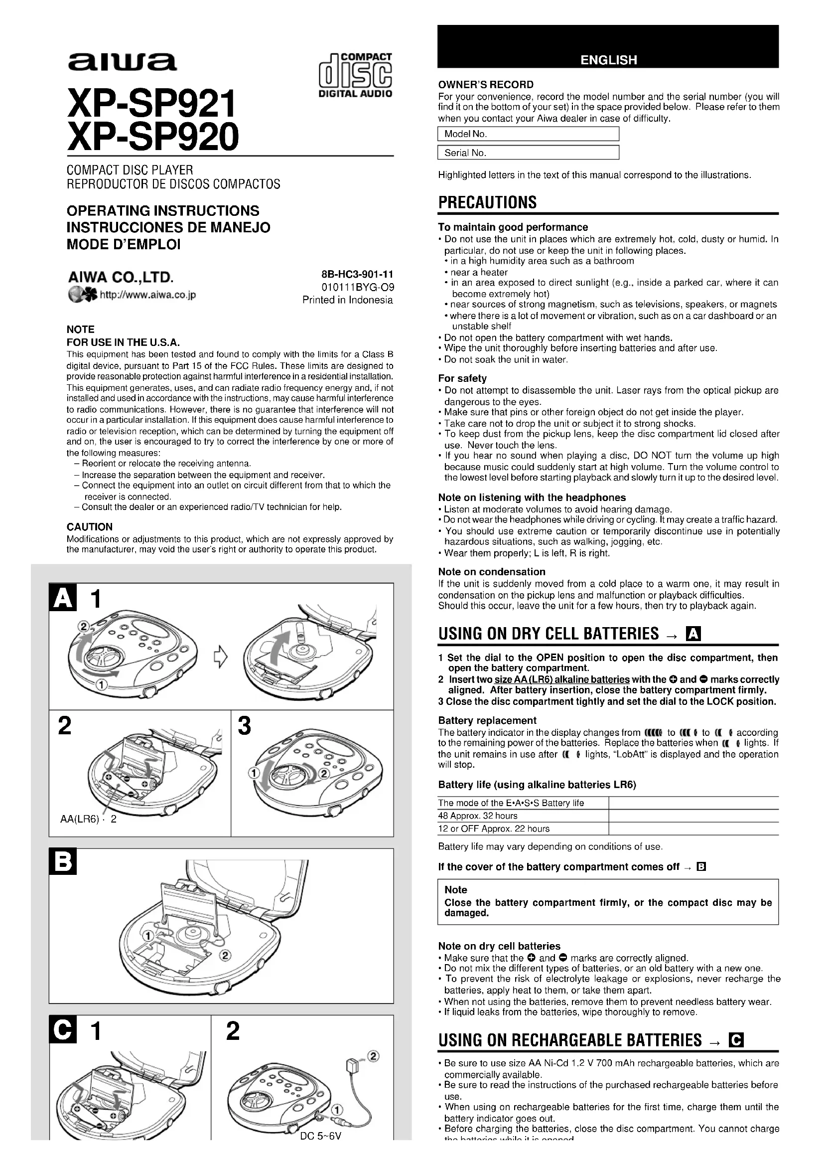 XPSP921 - Lecteur/enregistreur de cd AIWA - Notice d'utilisation et mode d'emploi gratuit