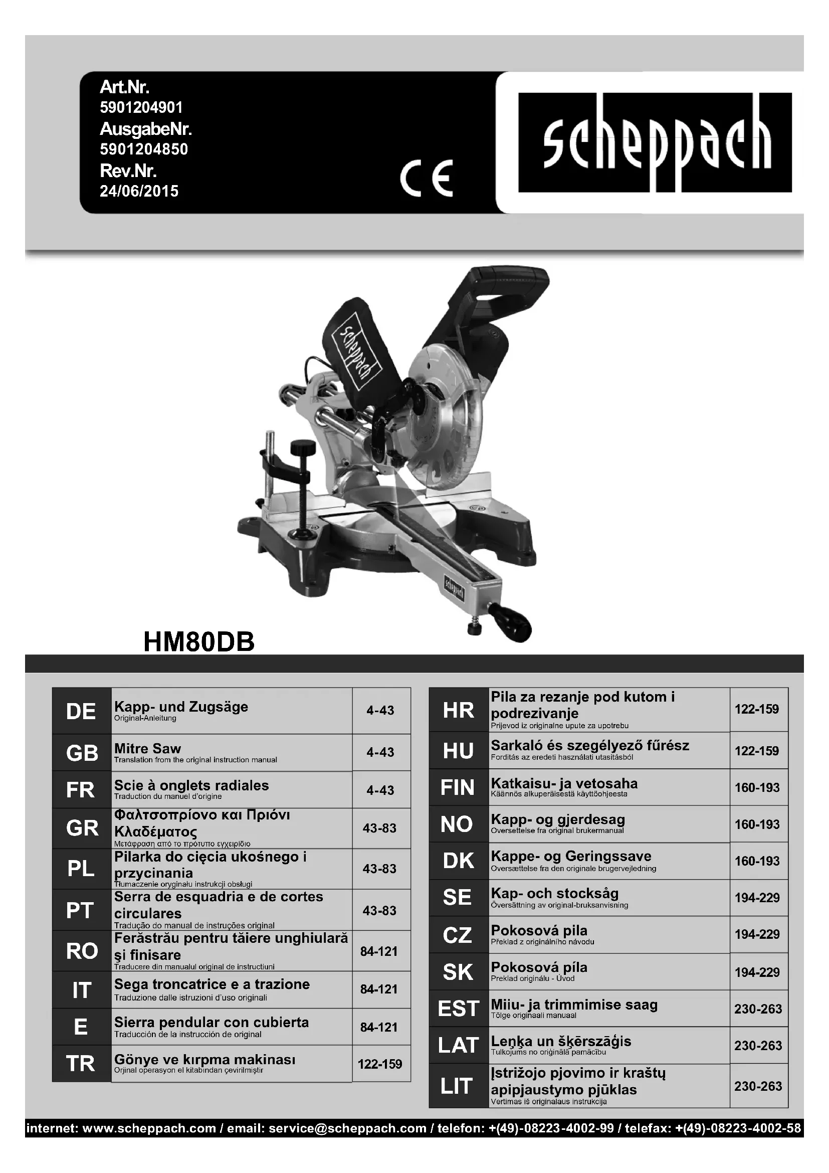Retrouvez gratuitement la notice de l'appareil HM80DB SCHEPPACH au format PDF.