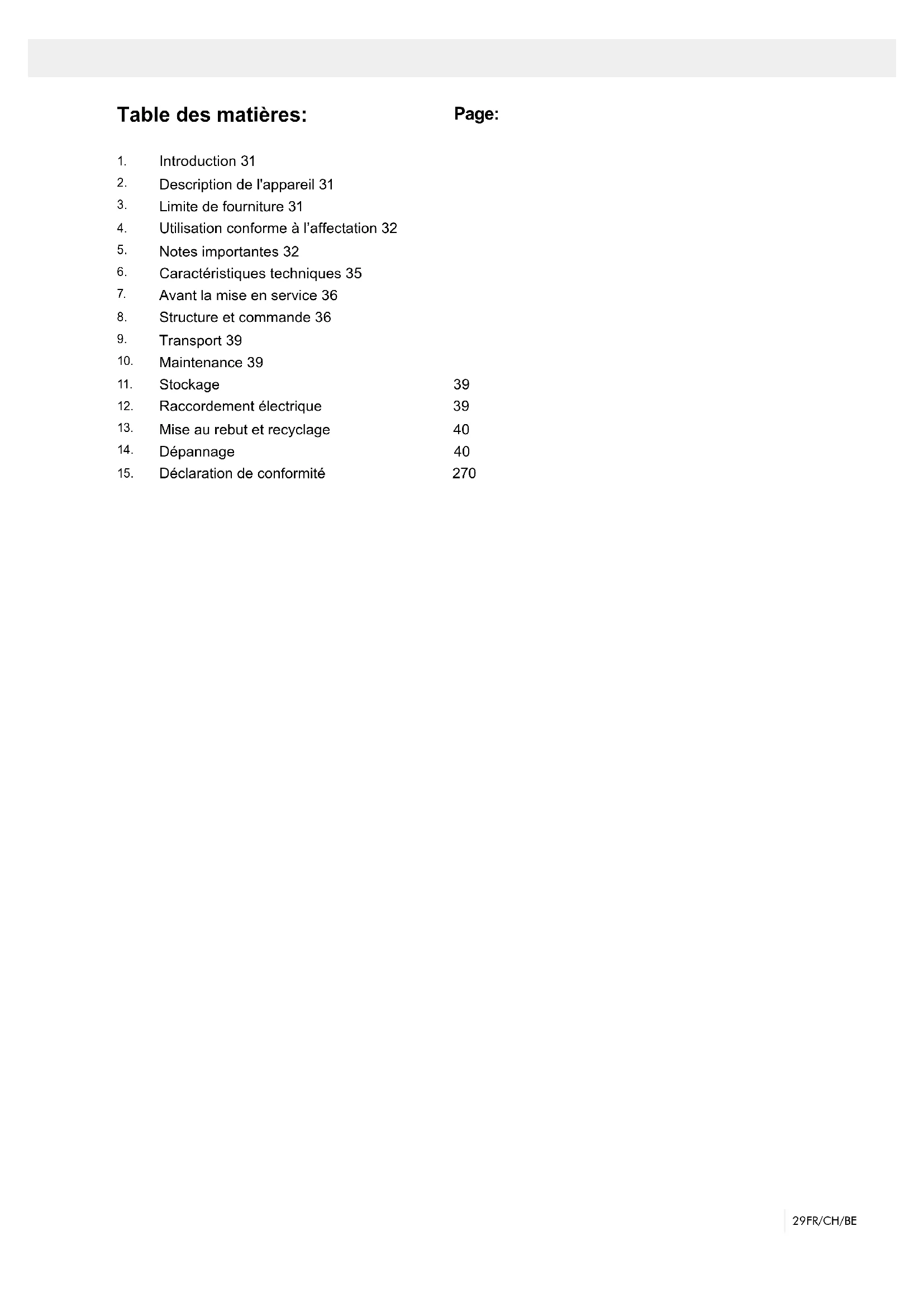 L’appareil se trouve dans un emballage permettant d’éviter les dommages dus au transport. Cet emballage est une matière première et peut donc être réutilisé ul- térieurement ou être réintroduit dans le circuit des ma- tières premières. Ne jetez pas les piles dans les ordures ménagères, dans le feu ni dans l’eau. Les piles doivent être collectées, recyclées ou éliminées dans le respect de l’environnement. L’appareil et ses accessoires sont en matériaux divers, comme par ex. des métaux et ma- tières plastiques. Eliminez les composants défectueux dans les systèmes d’élimination des déchets spéciaux. Renseignez-vous dans un commerce spécialisé ou au- près de l’administration de votre commune !41NL/BE Inhoudsopgave: pagina: