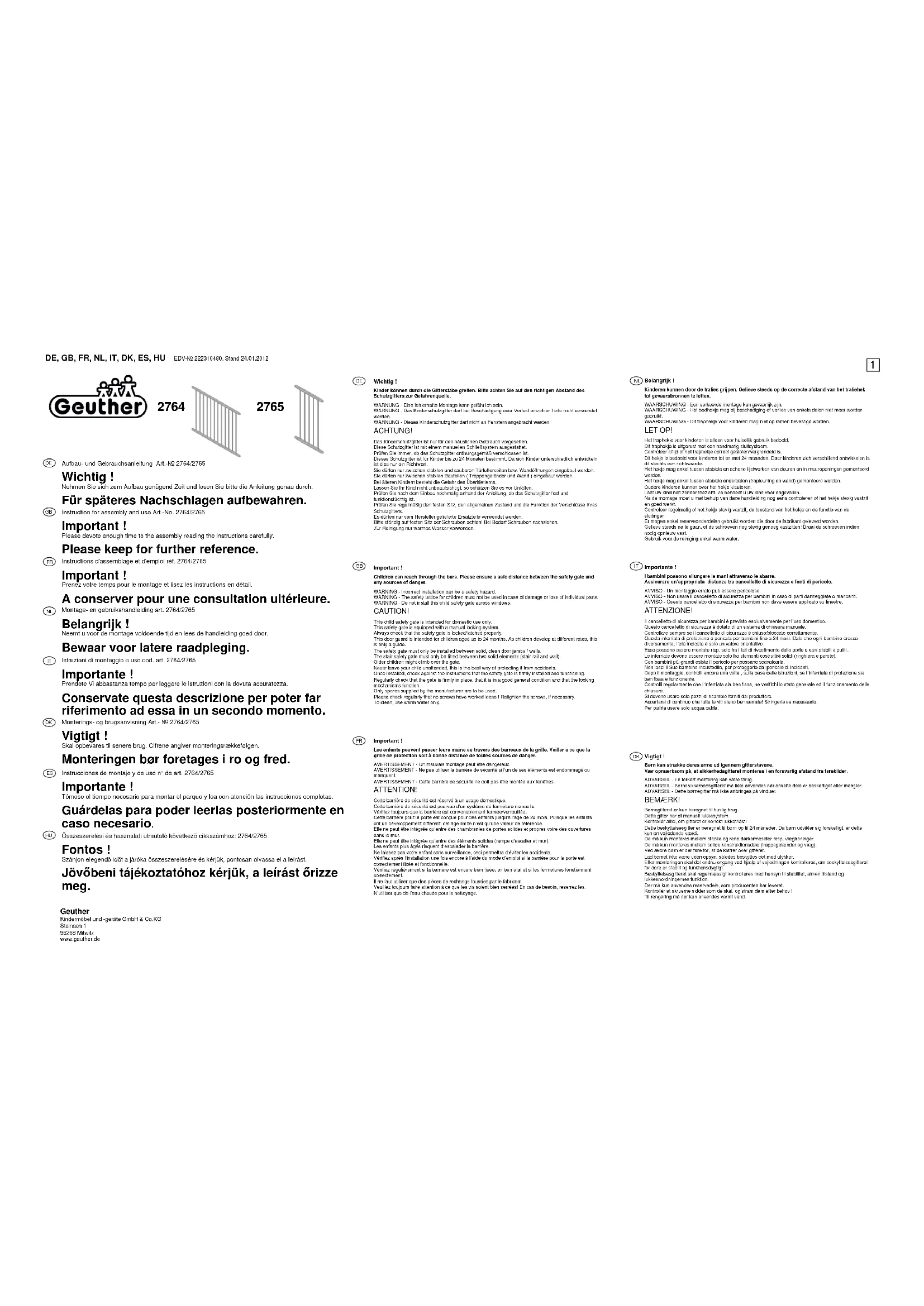 2764 - Barrière de sécurité enfant Geuther - Notice d'utilisation et mode d'emploi gratuit