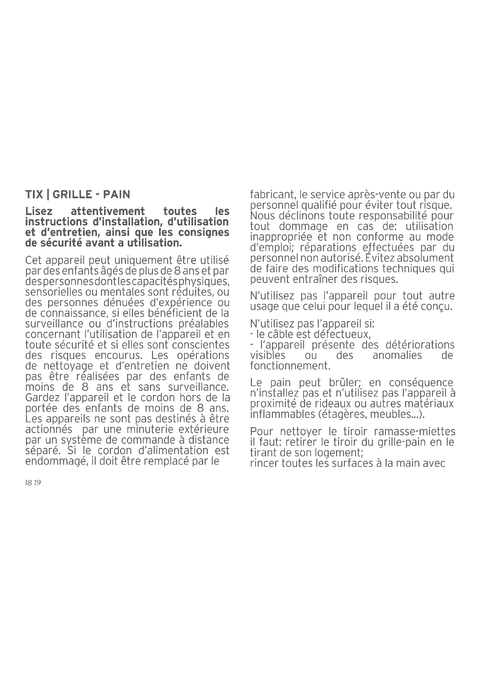 Conserve soigneusement cette notice d'utilisation et n'oubliez pas de la remettre à ceux qui utiliseront eventulement le grille-pain après vous.