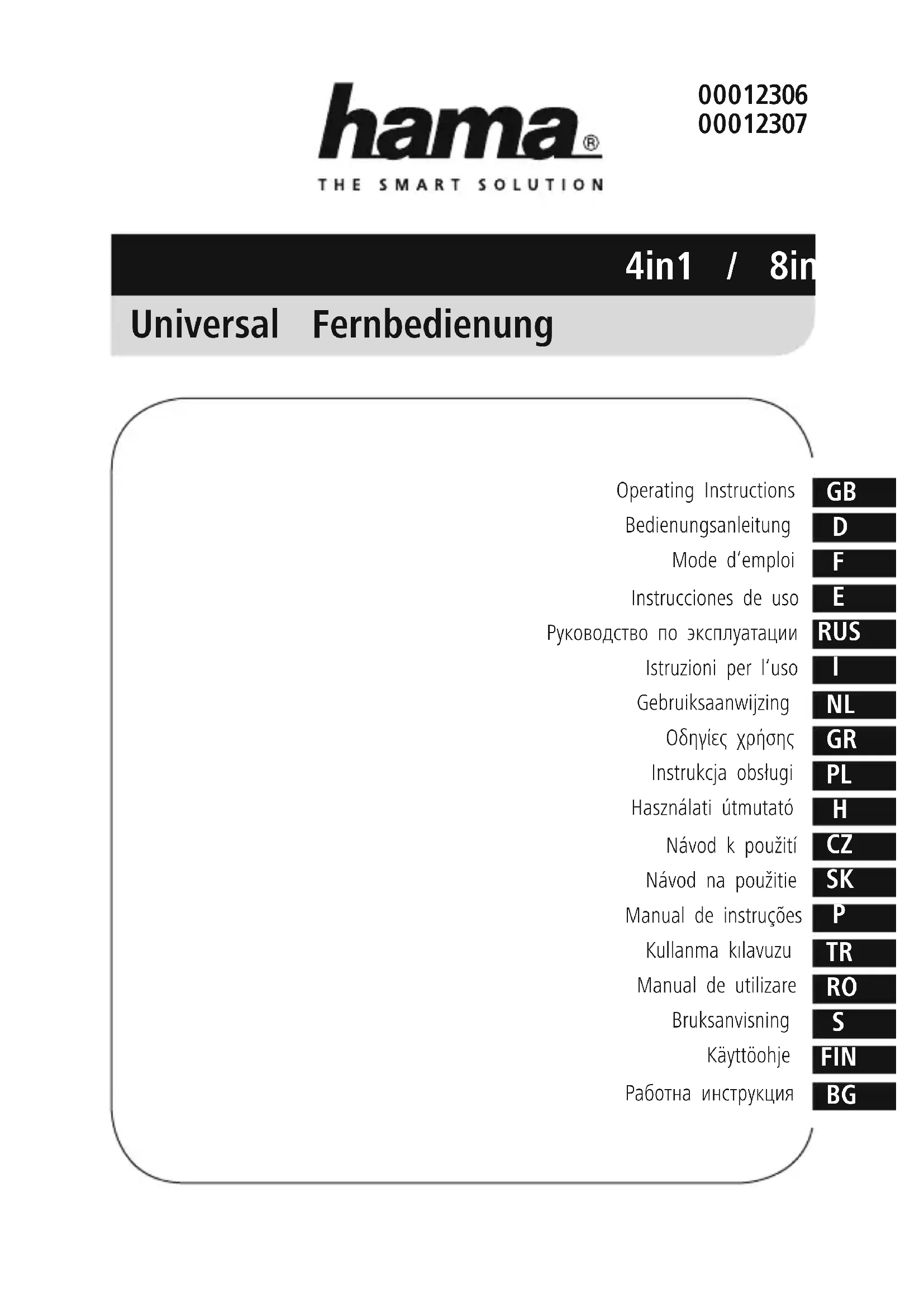8in1 00012307 - Télécommande HAMA - Notice d'utilisation et mode d'emploi gratuit
