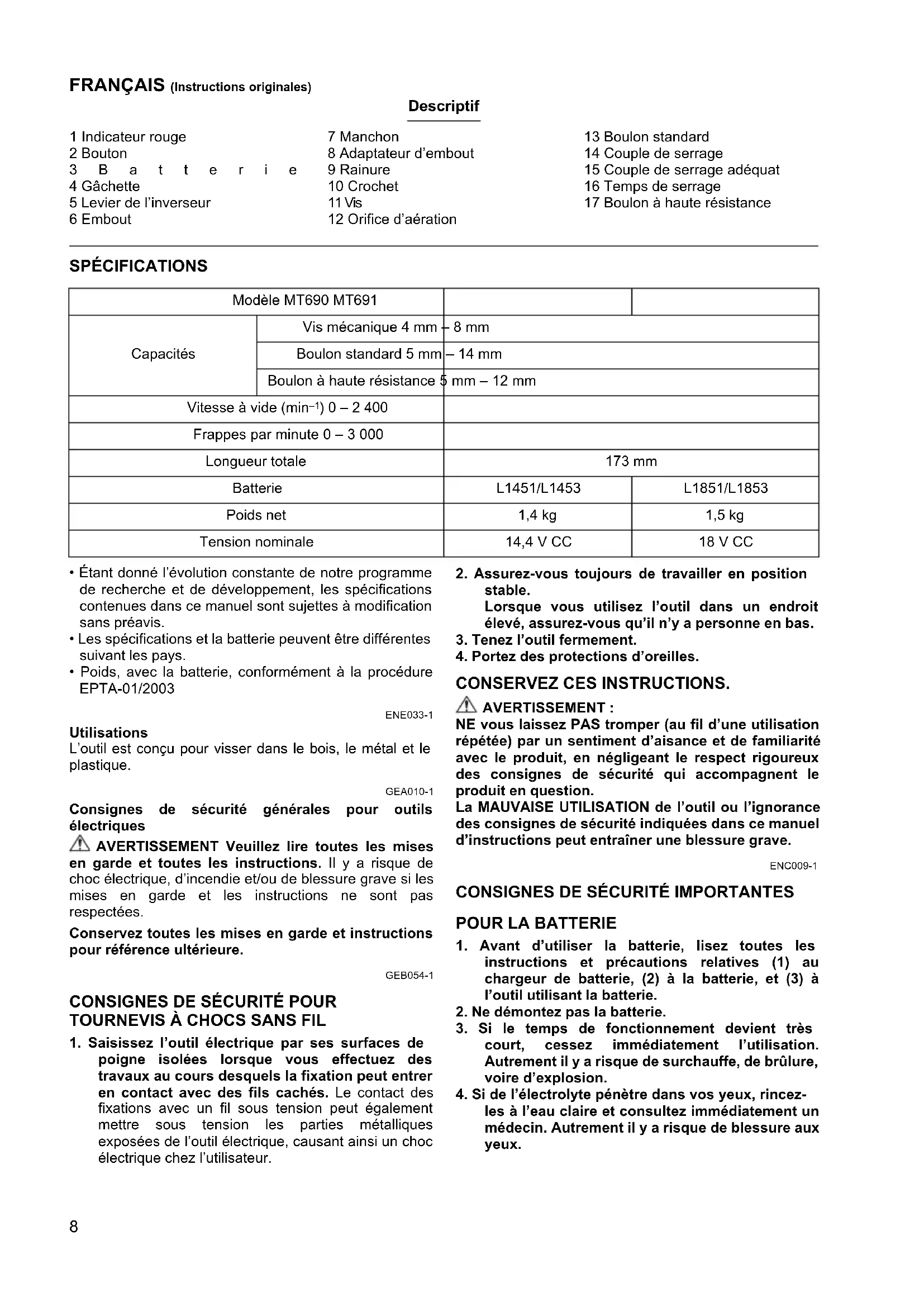 MODE D'EMPLOI MT691 Maktec