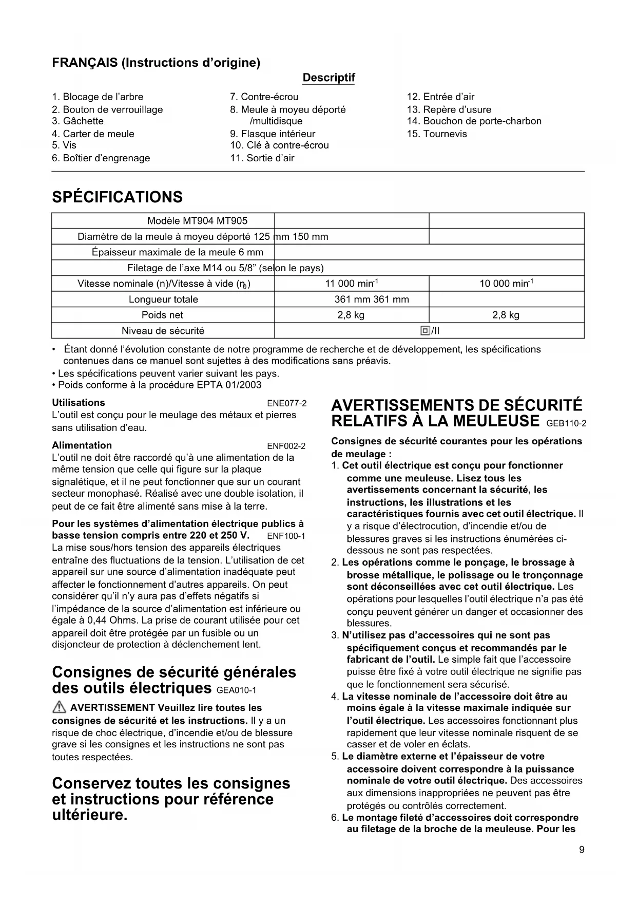 MODE D'EMPLOI MT904 Maktec