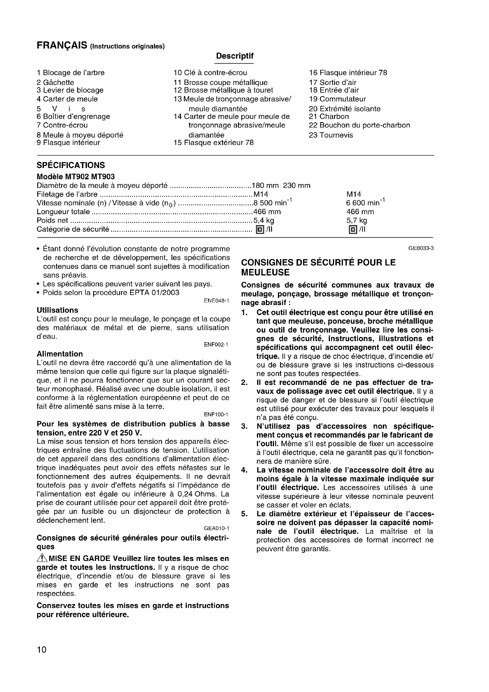 MT902 - Meuleuse d'angle Maktec - Notice d'utilisation et mode d'emploi gratuit