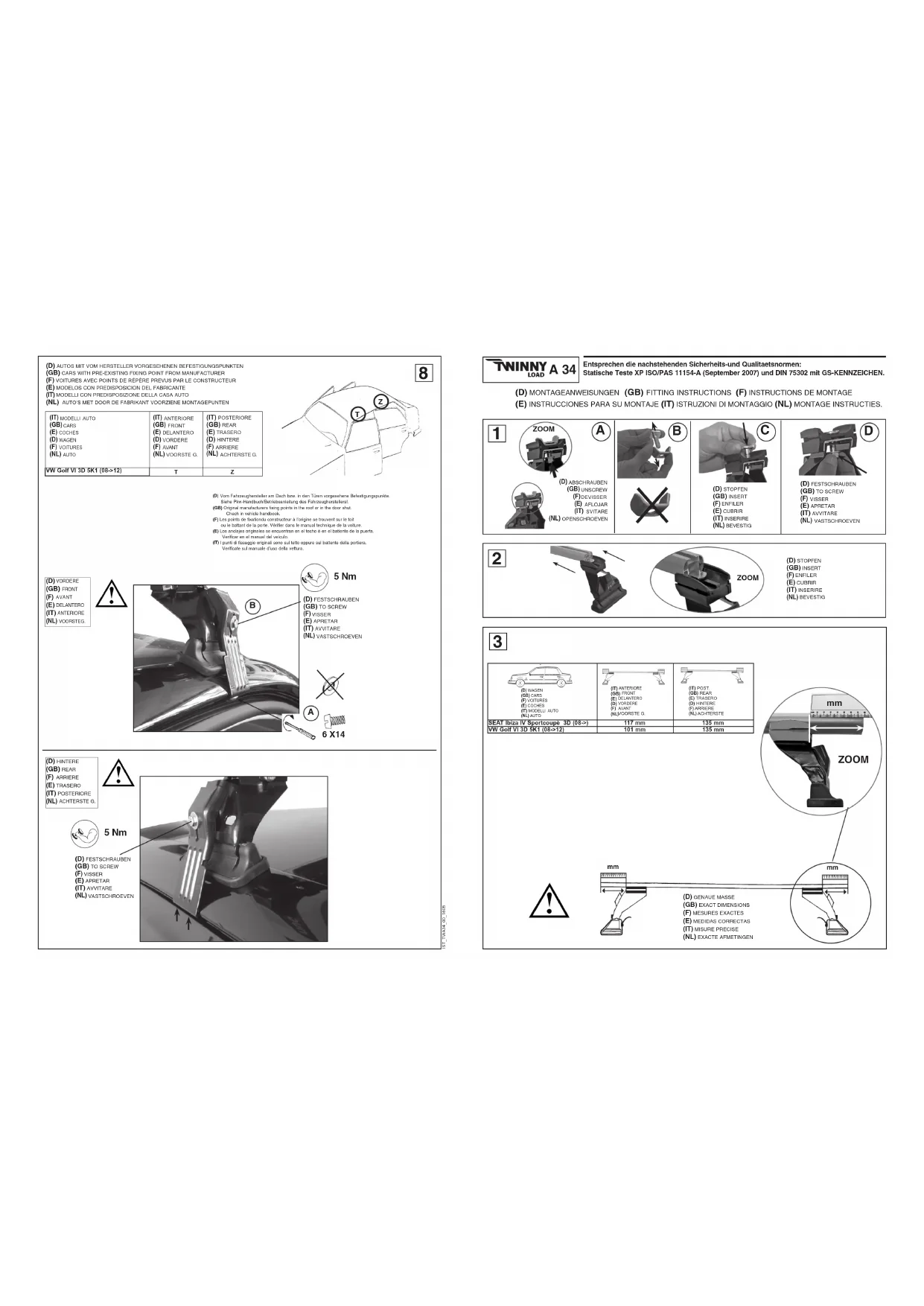 (D) AUTOS MIT VOM HENSTELLER VOIGESPEHENI REEFESTIGUNGSPUNKTEN (GB) CARS WITH PRE-EXISTING FIXING POINT FROM MANUFACTUR (F) VOTURES AVEC POINTS DE RÈPÈRE PREVIS PAR LE CONSTRUCTEUR (E) MODELOS CON PREDISPOSICION DEL FABRICANTE (IT) MODELLI CON PREDISPOSIZIONE DELLA CABA AUTO (NL) AUTO'S MET DOOR DE FABRICANT VOORZIENE VONTAGEPUNTEN (IT) MODELLI AUTO (GB) CARS (E) COULIES (D) VARDEN (F) VOTURES (NL) AUTO SEAT Ibiza IV Sportcoupé 3D (08->) (T) ANTERIORE (GB) FRONT (E) DELANTINO (D) VORDERE (F) AVAT (NL)/VOORSTE G. (T) POSTERIORE (GB) REAR (E) TRASERO (D) HINTERE (F) ARRIERE (NL) ACHTERSTE G. (Z) (c) VOM FISZEGHEWEDER OR: Each IQR. In don Tame wagesbene Betsel gungsturione. Centre Pivial lambuch/Sandemierung und Faraswiegendeten (GB) Dampere manurendement lang corte in the pool on the door after. Crash in vertical modebook (P) an portable borkenl uccoucheur A. Largere are bound at a bid on a belond du porto. Vorrige darce to manual latrique et la portu. (L) Les ampalos #### #### ## #### #### ### of bobe e## a #### #### de la portu. Veriflor en el #### del ####. (j) sur di bovage originale ## #### #### #### #### #### #### #### #### #### #### #### #### #### #### #### #### #### #### #### #### #### #### #### #### #### #### #### #### #### #### #### #### #### #### #### #### #### #### #### ####### (V) AVATARE (NL) VASTSCHROEVEN (D) FESTSCHRAUBEN (GB) TO SCREW (F) VISSER (E) APRETAR (IT) AVATARE (NL) VASTSCHROEVEN (B) 5 Nm 6 X14 (A) (D) HINTERE (GB) HLAR (F) ANNIESE (E) TRASERO (IT) POSTERIORE (NL) ACHTERSTE G. (D) FESTSCHRAUBEN (GB) TO SCREW (F) VISSER (E) APRETAR (IT) AVATARE (NL) VASTSCHROEVEN