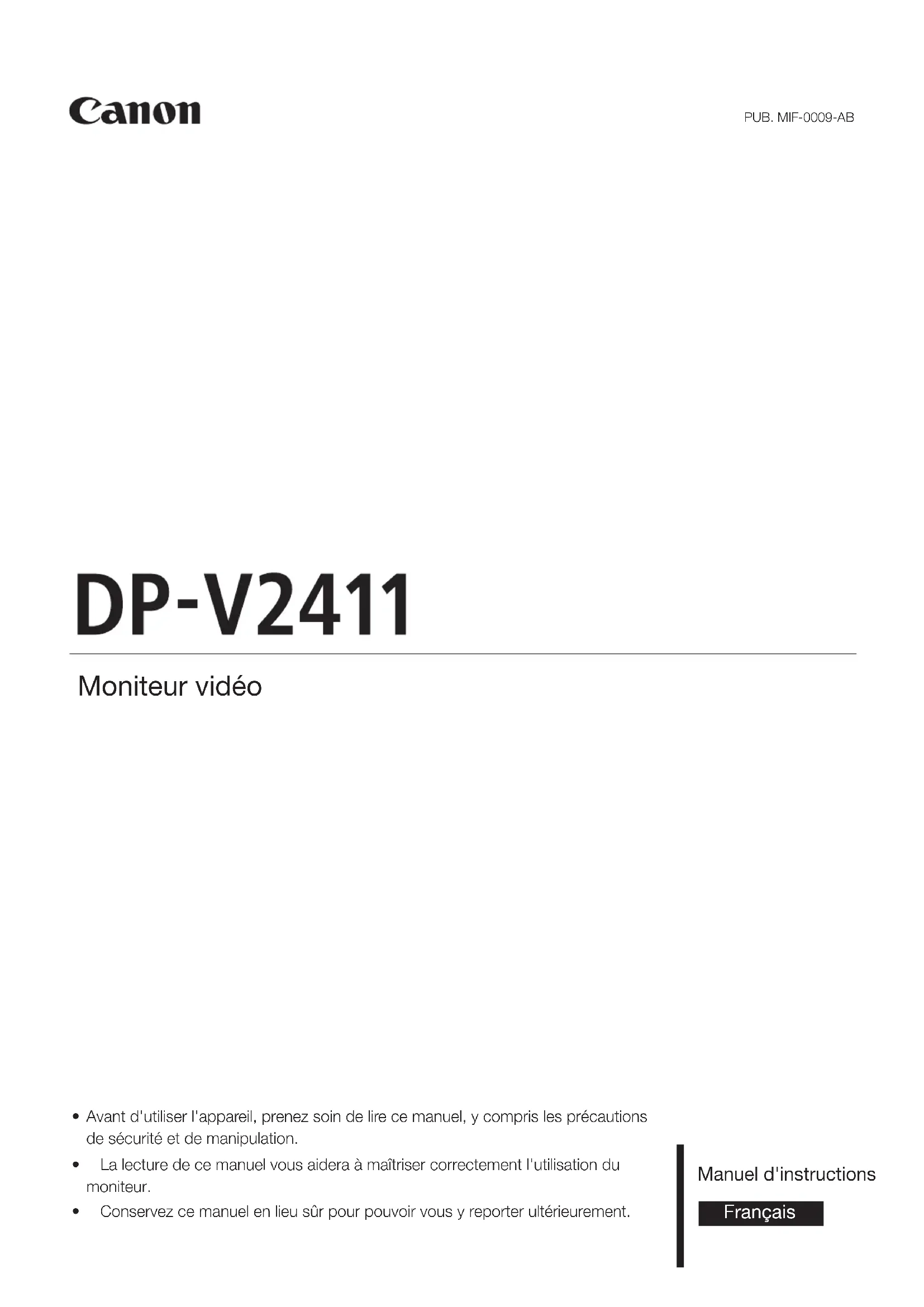 MODE D'EMPLOI DPV2411 CANON