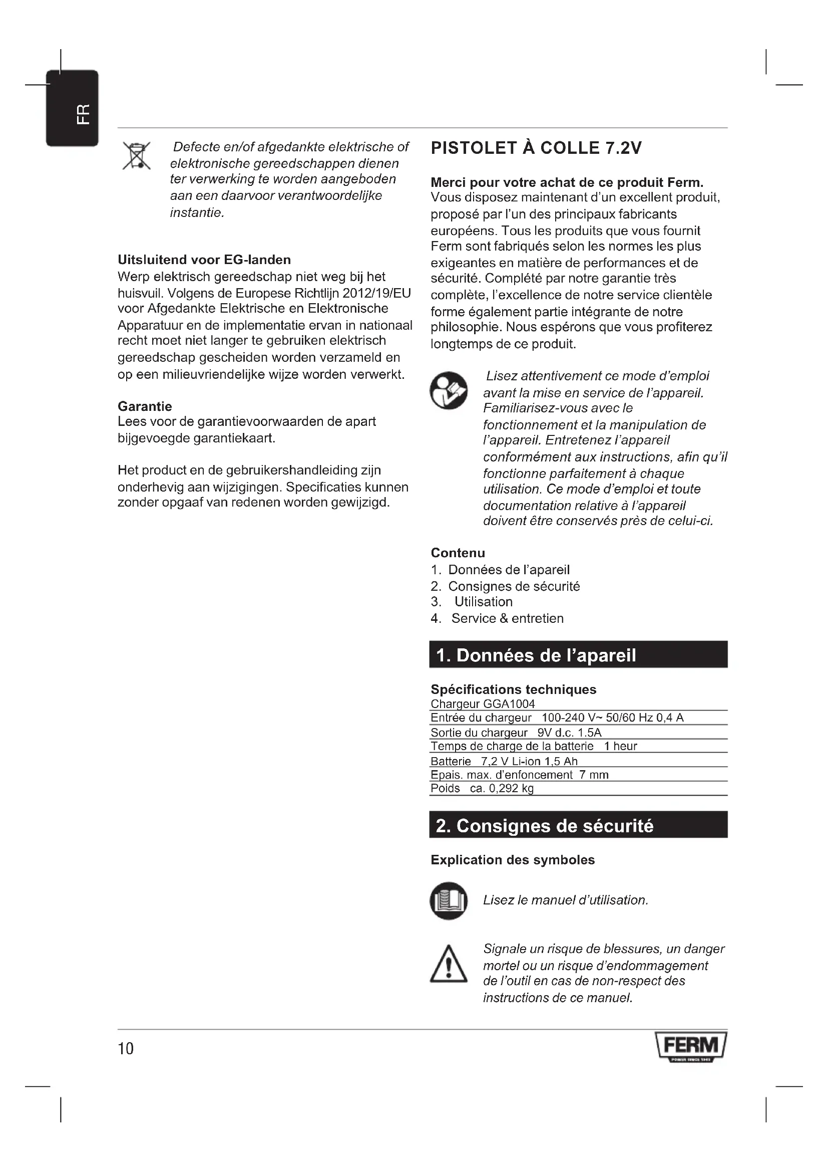 MODE D'EMPLOI GGM1003 Ferm