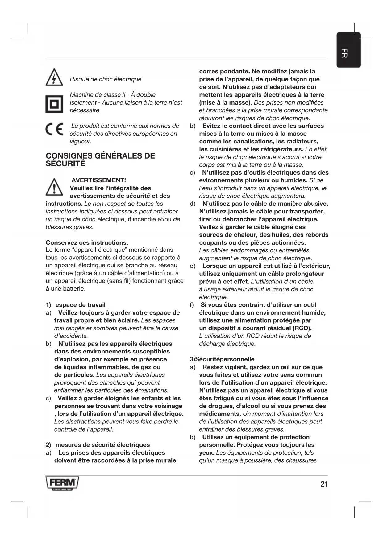 Merci d'avoir acheté ce produit FERM. Grâce à lui, vous possédez maintenant un produit d'excellente qualité, proposé par l'un des fournisseurs leaders en Europe. Tous les produits proposés par Ferm sont fabriqués conformément aux plus hautes normes de performance et de sécurité. Notre philosophie d'entreprise prévoit également un excellent service clientèle, renforcé par notre garantie complète. Nous espérons que vous apprécierez l'utilisation de ce produit pendant de nombreuses années.