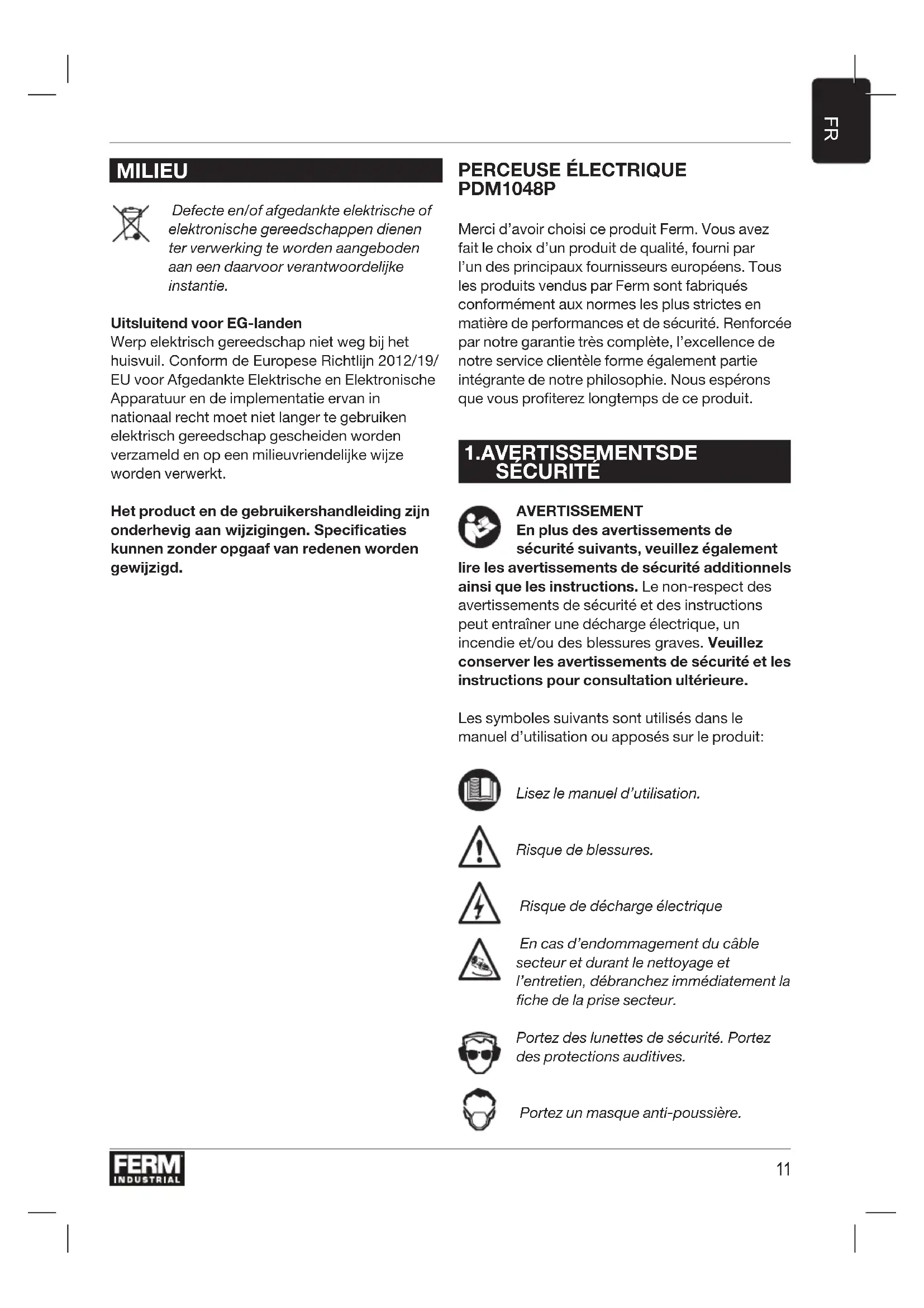 MODE D'EMPLOI PDM1048P Ferm