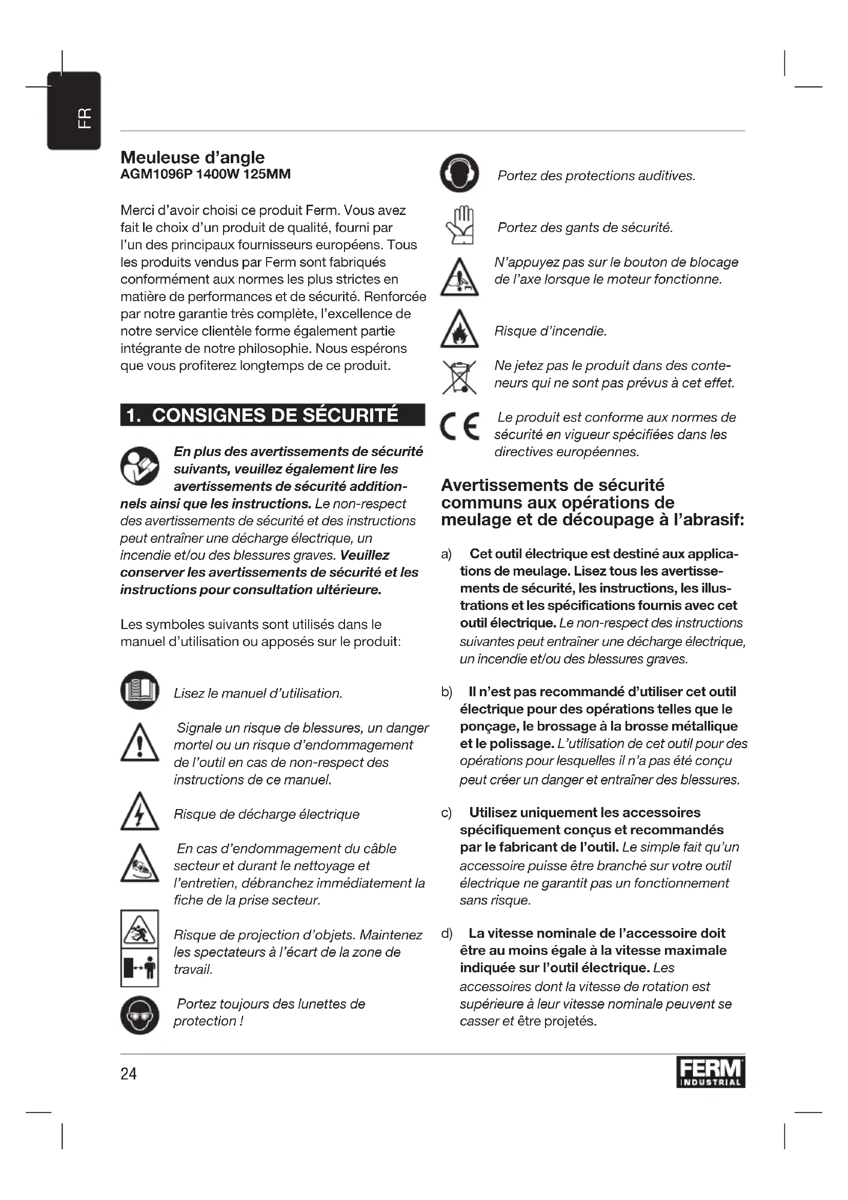 MODE D'EMPLOI AGM1096P Ferm