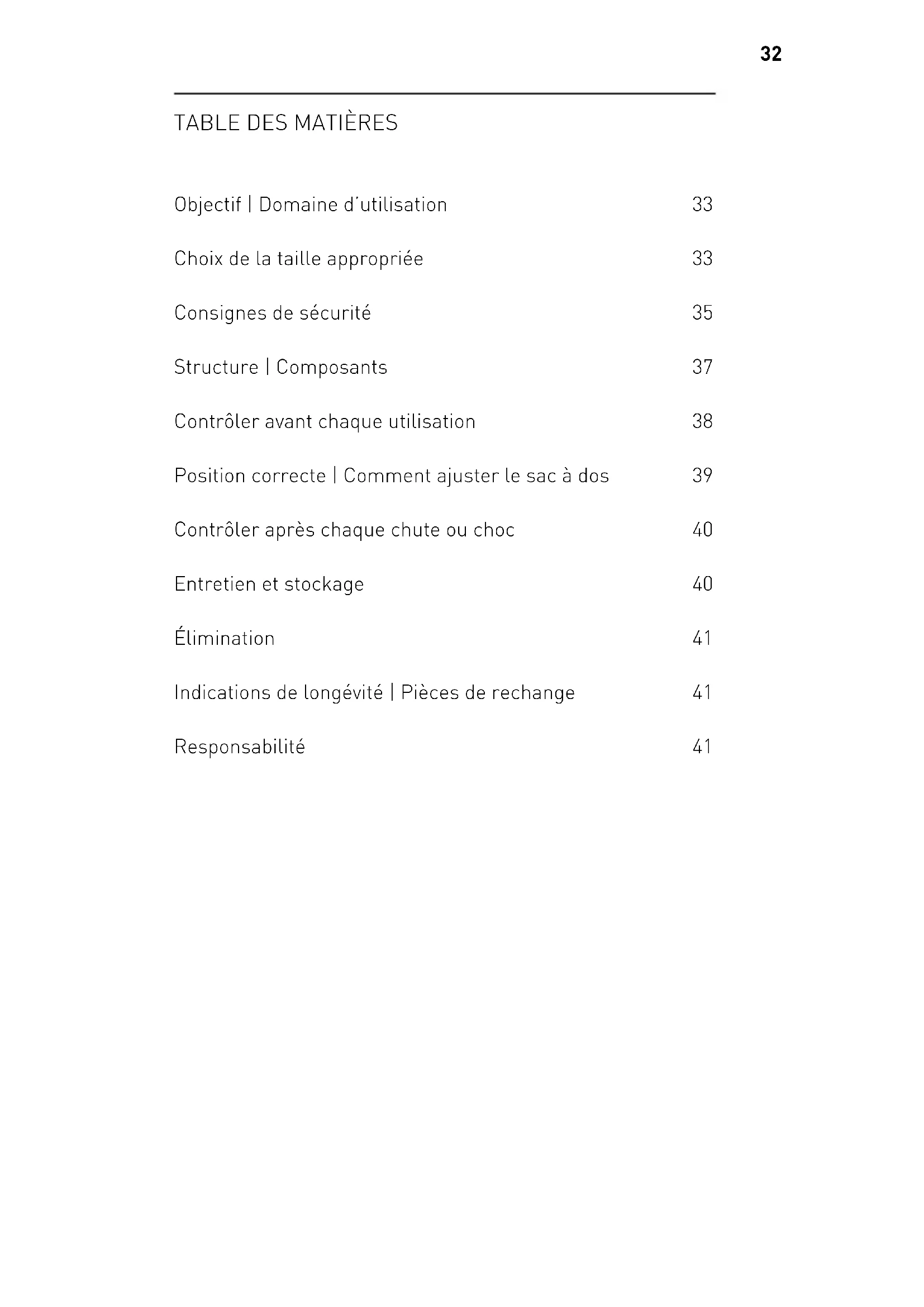 - Vérifiez particulièrement la solidité des points de couture des bretelles et de la ceinture.