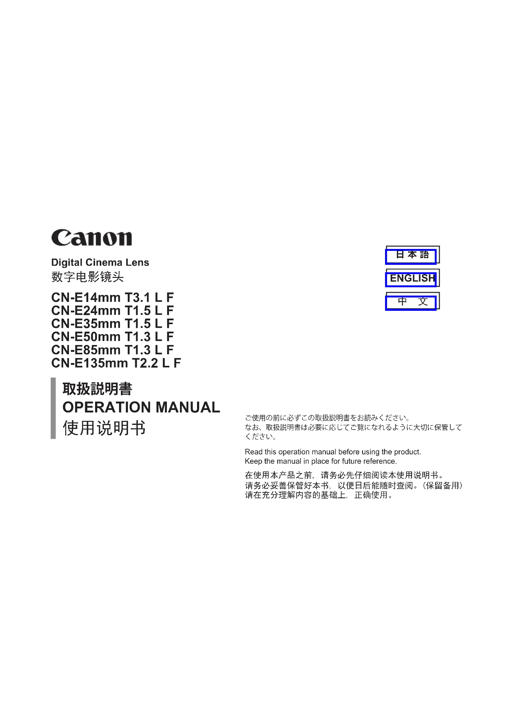 Retrouvez gratuitement la notice de l'appareil CN35mm T1.5 L F CANON au format PDF.