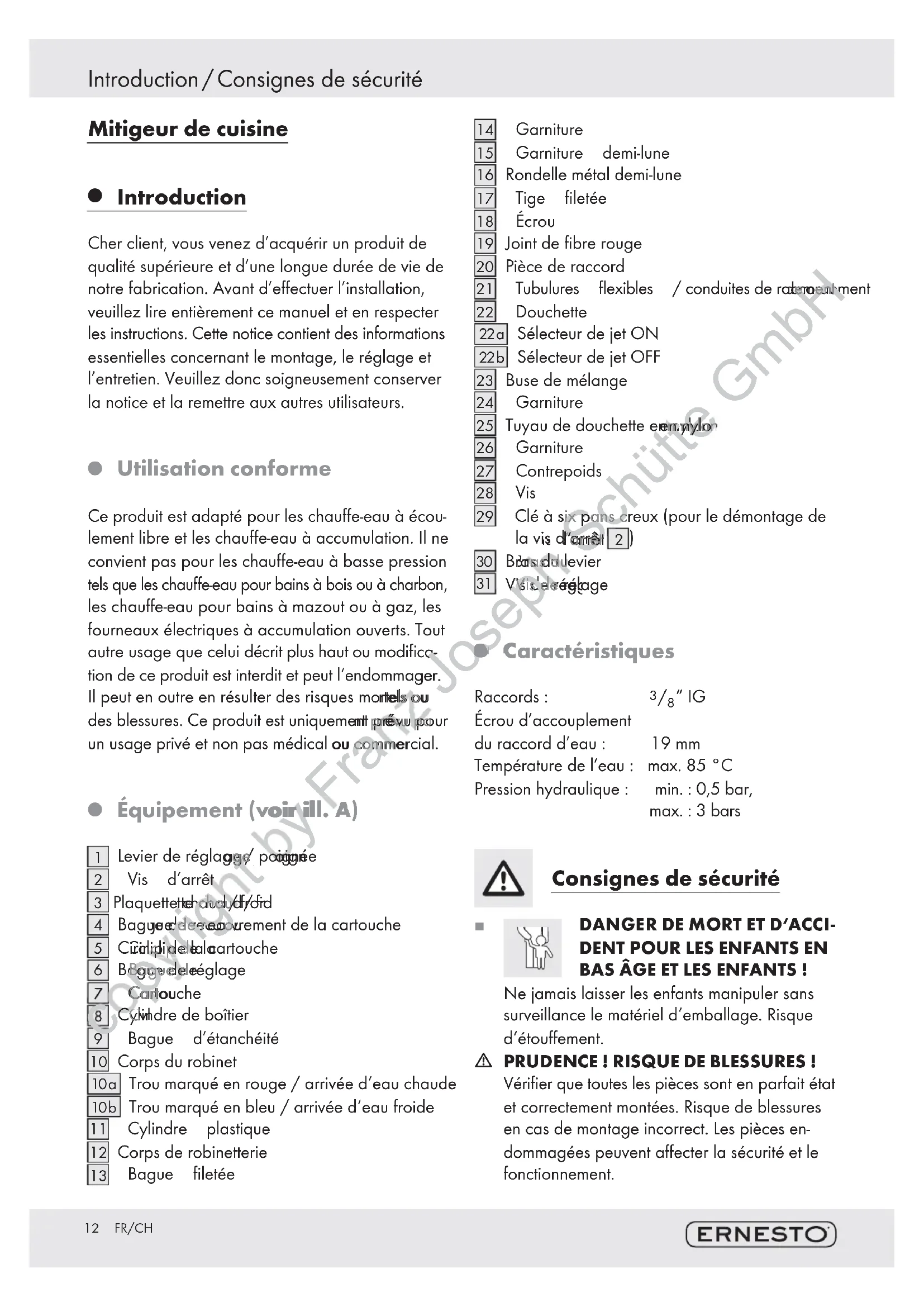 GmbH Page Page12 FR/CH Mitigeur de cuisine