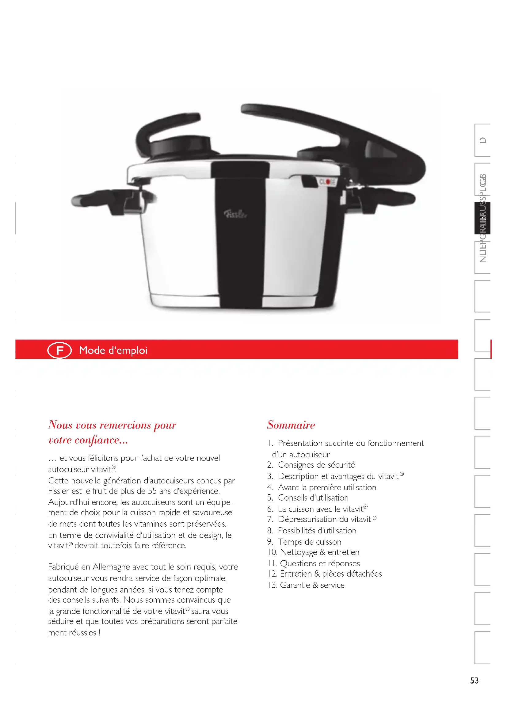 Retrouvez gratuitement la notice de l'appareil Vitavit edition Fissler au format PDF.