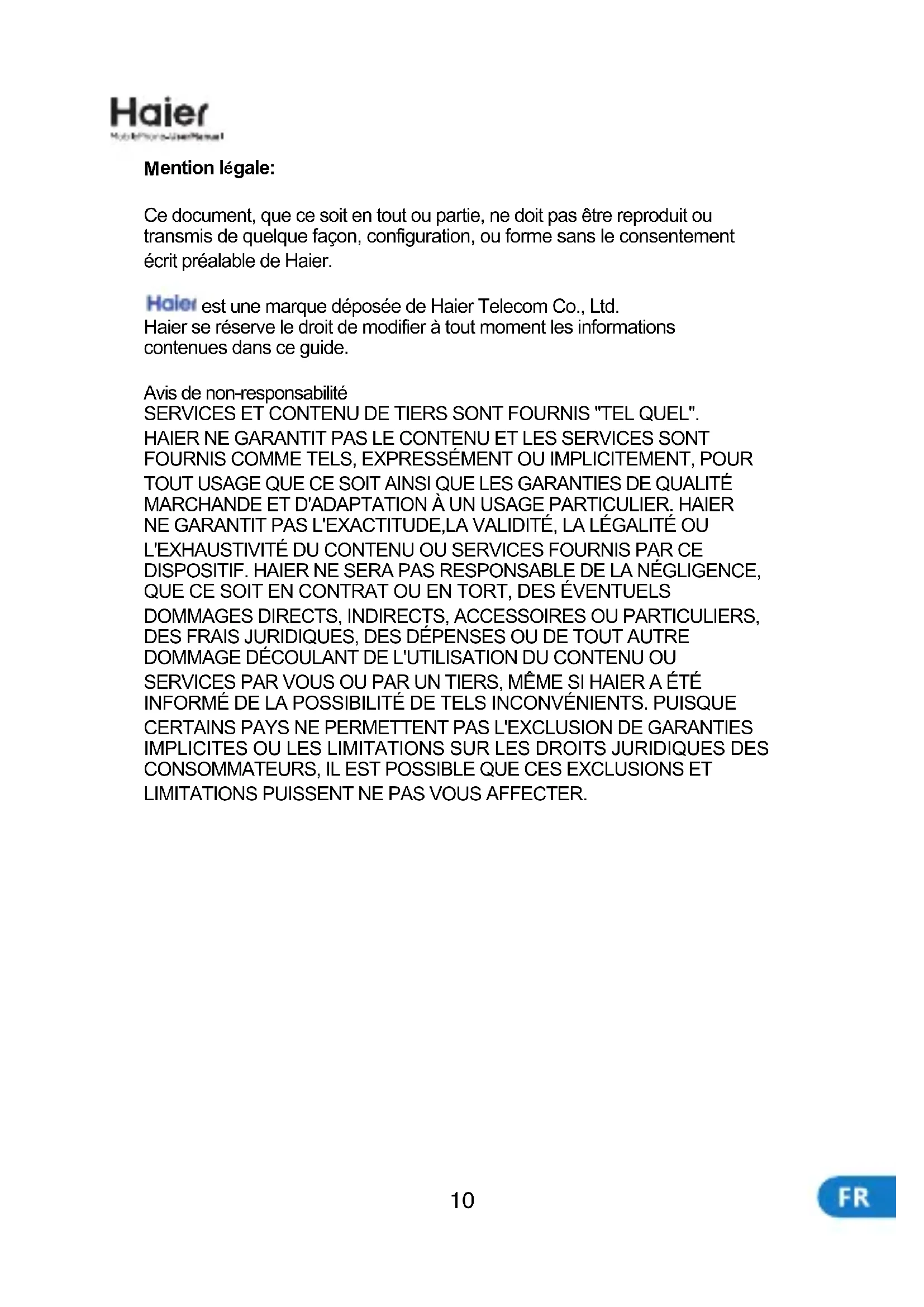 V6 Voyage - Smartphone HAIER - Notice d'utilisation et mode d'emploi gratuit