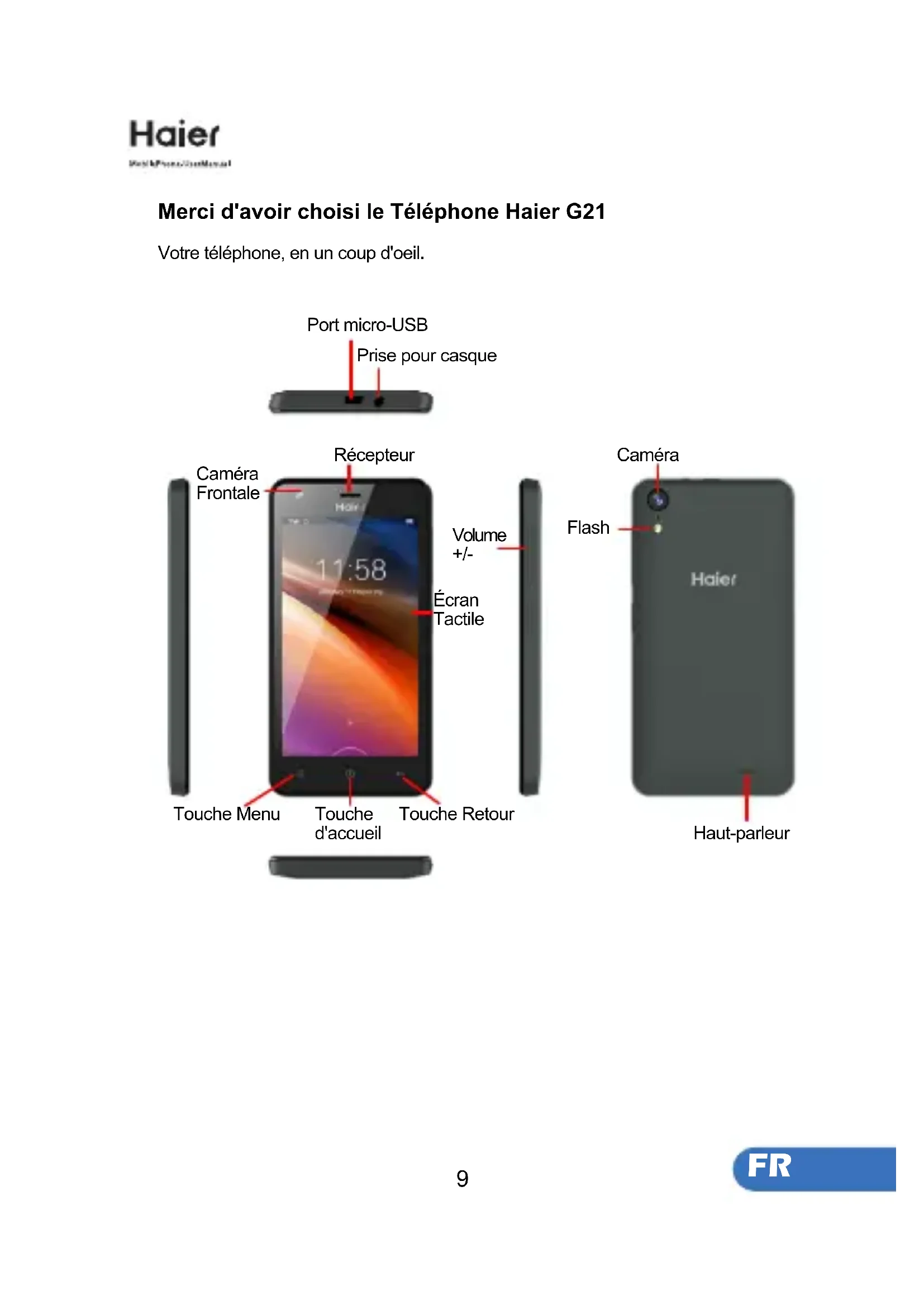 ENMerci d'avoir choisi le Téléphone Haier G21 Votre téléphone, en un coup d'oeil.