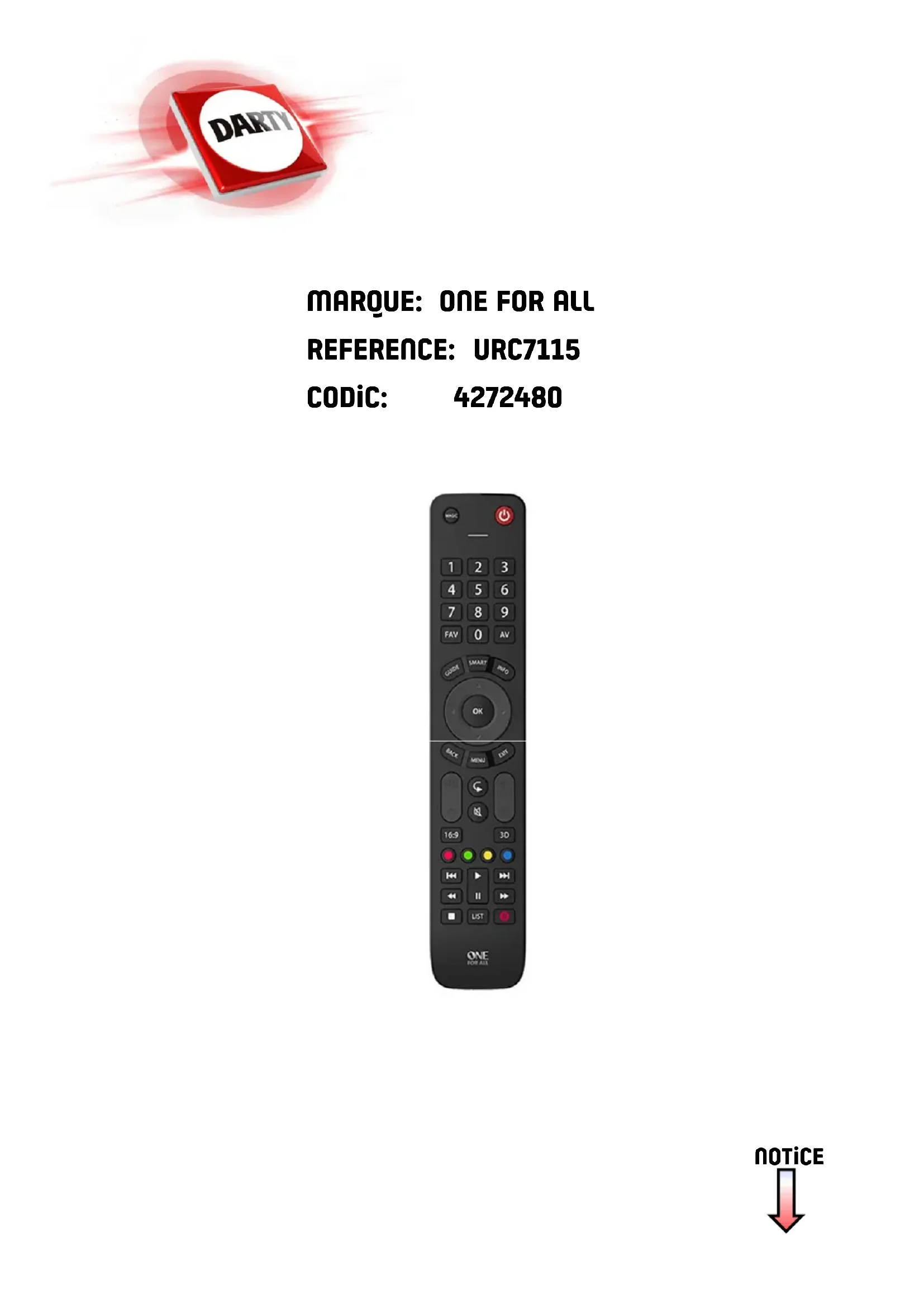 Retrouvez gratuitement la notice de l'appareil Evolve TV URC 7115 ONE FOR ALL au format PDF.
