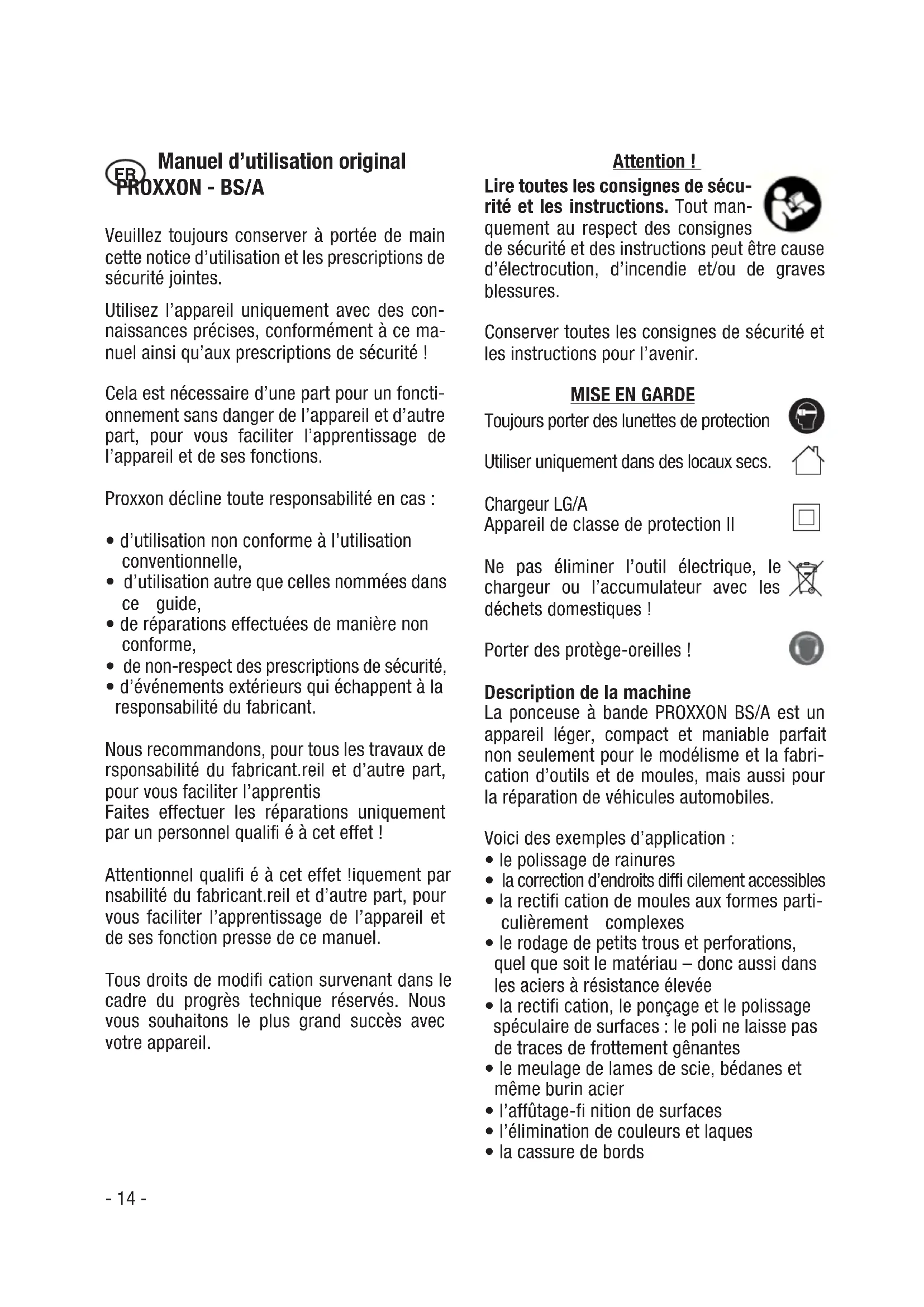 Retrouvez gratuitement la notice de l'appareil BSA PROXXON au format PDF.