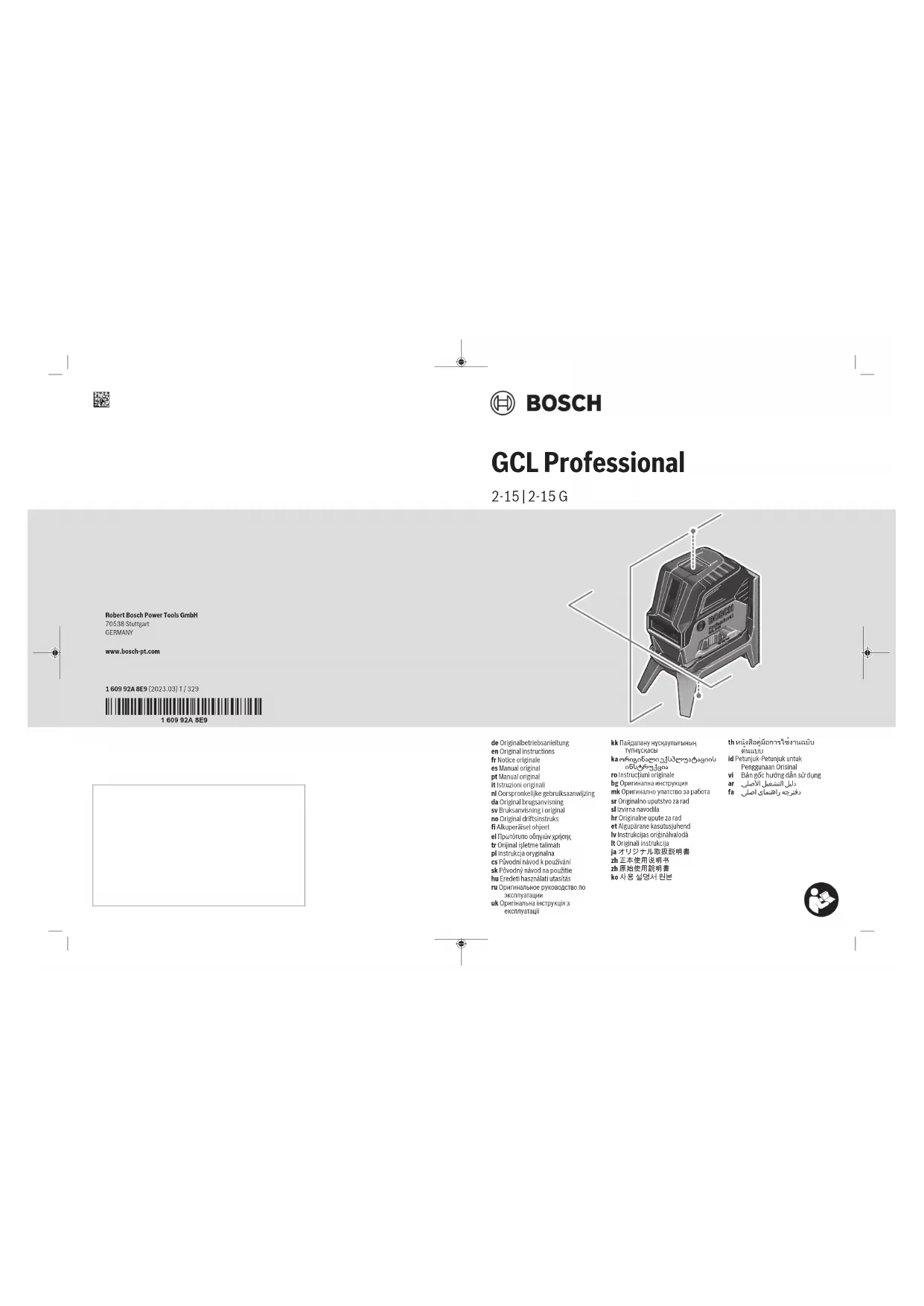 Les accessoires décrits ou illustrés ne sont pas tous compris dans la fourniture. Vous trouverez l’ensemble des acces- soires dans notre gamme d’accessoires. Caractéristiques techniques Laser points et lignes GCL 2-15 GCL 2-15 G Référence 3 601 K66 E.. 3 601 K66 J.. Bosch Power Tools 1 609 92A 8E9 | (20.03.2023)26 | Français Laser points et lignes GCL 2-15 GCL 2-15 G Portée