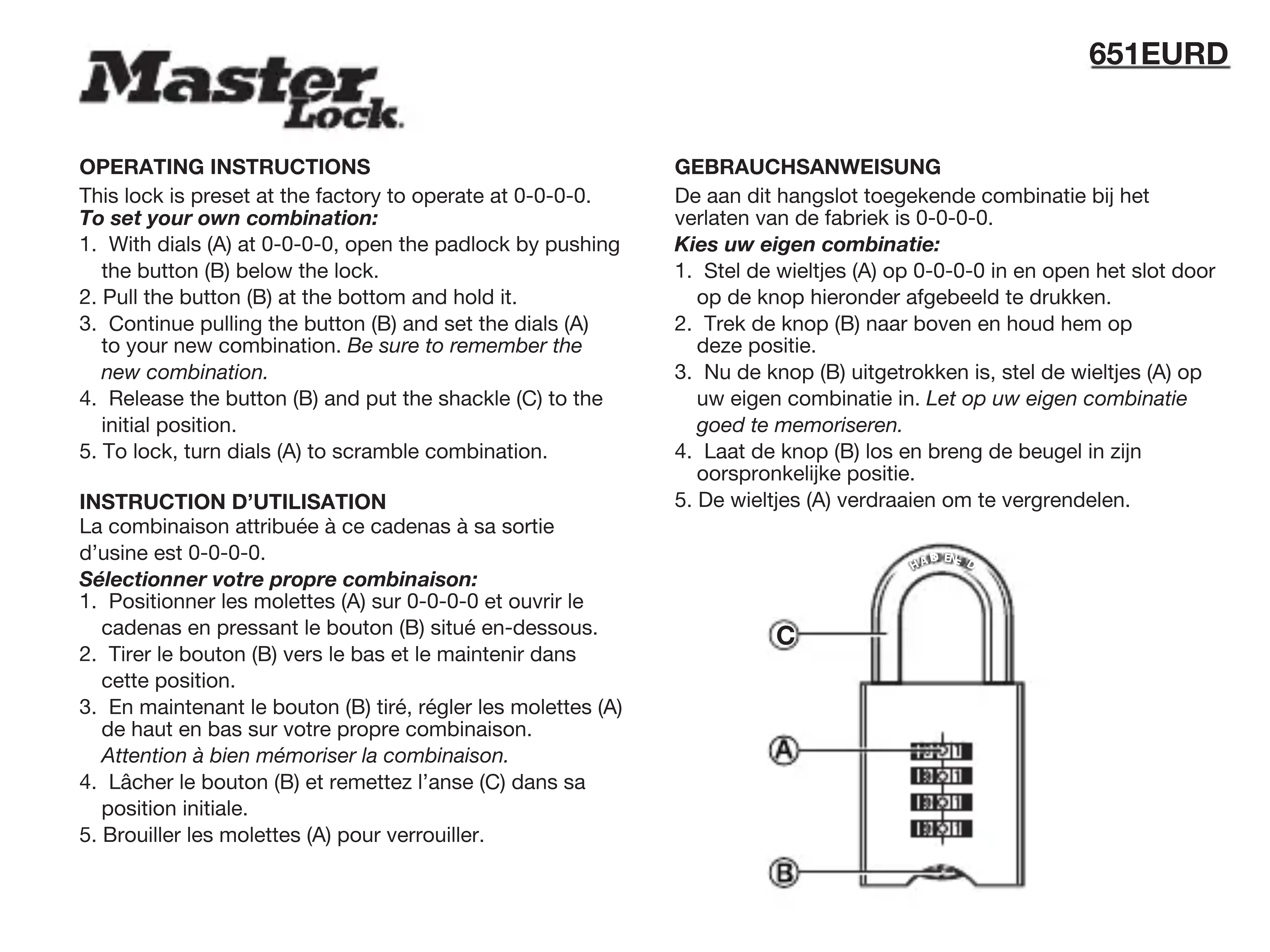 Retrouvez gratuitement la notice de l'appareil 651EURD Master Lock au format PDF.
