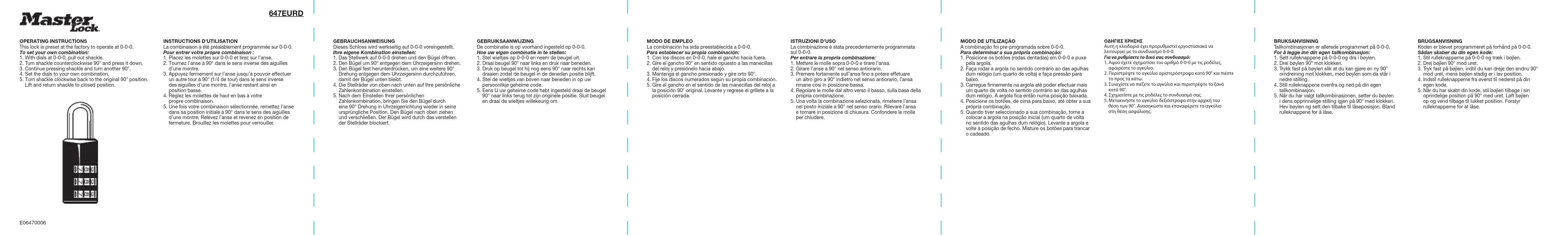 Retrouvez gratuitement la notice de l'appareil 647EURD Master Lock au format PDF.