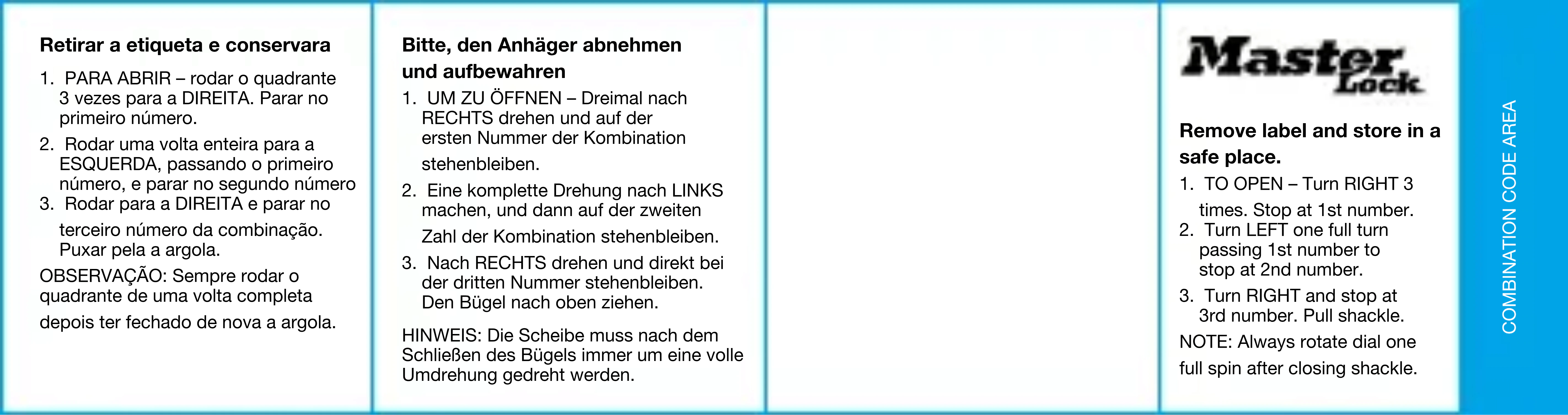 - POUR OUVRIR – Tourner 3 fois vers la DROITE. Arrêter au 1er numéro.