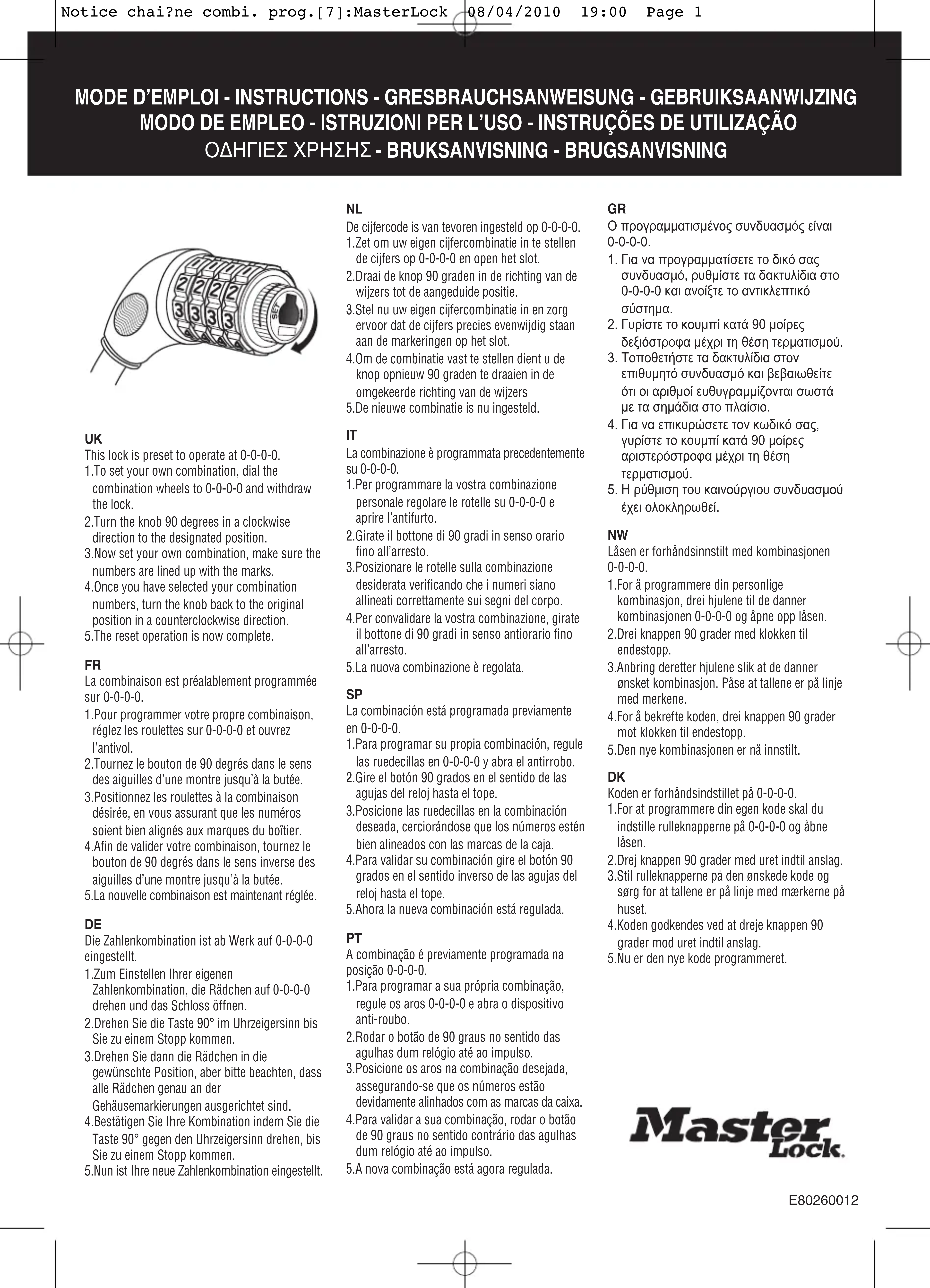 Retrouvez gratuitement la notice de l'appareil 8026EURD Master Lock au format PDF.