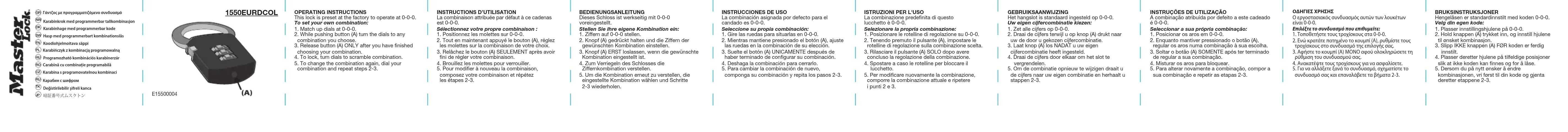 Retrouvez gratuitement la notice de l'appareil 1550EURDCOL Master Lock au format PDF.