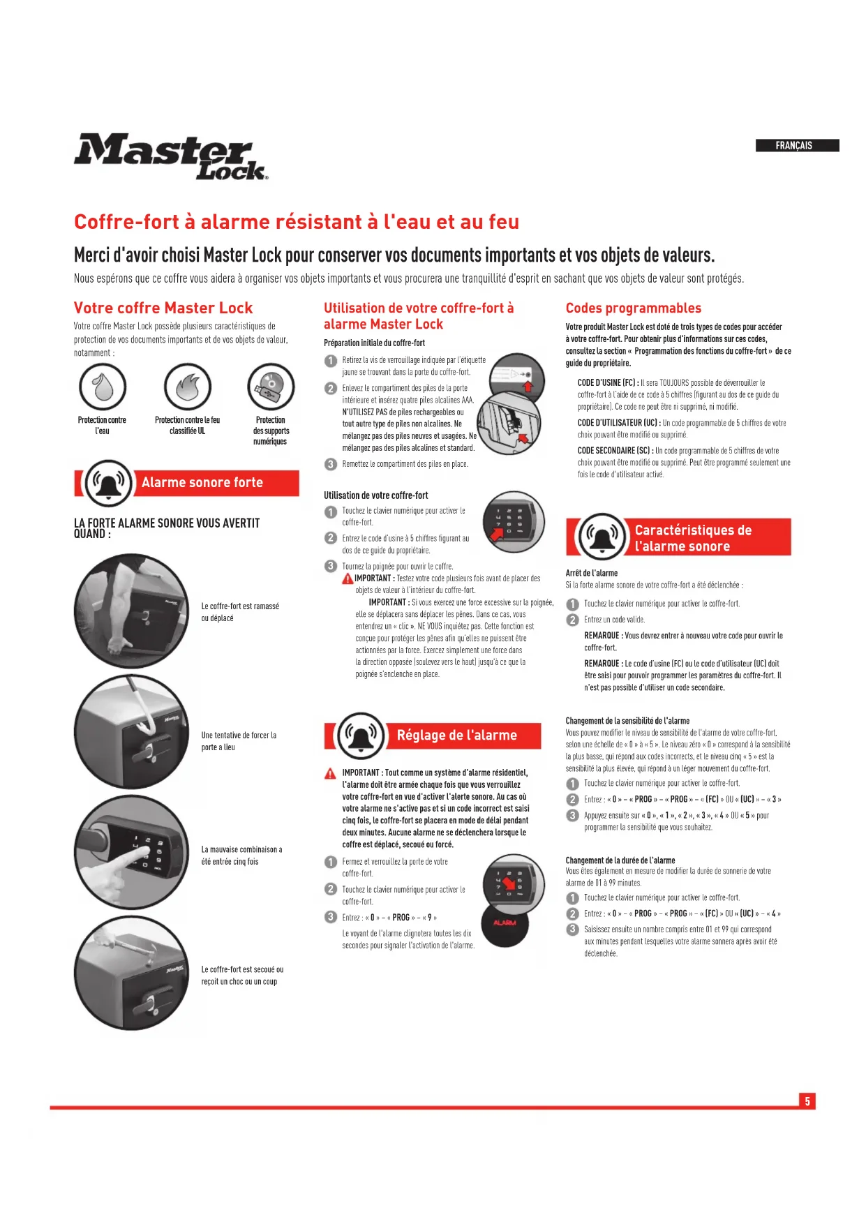Merci d'avoir choisi Master Lock pour conserver vos documents importants et vos objets de valeurs.