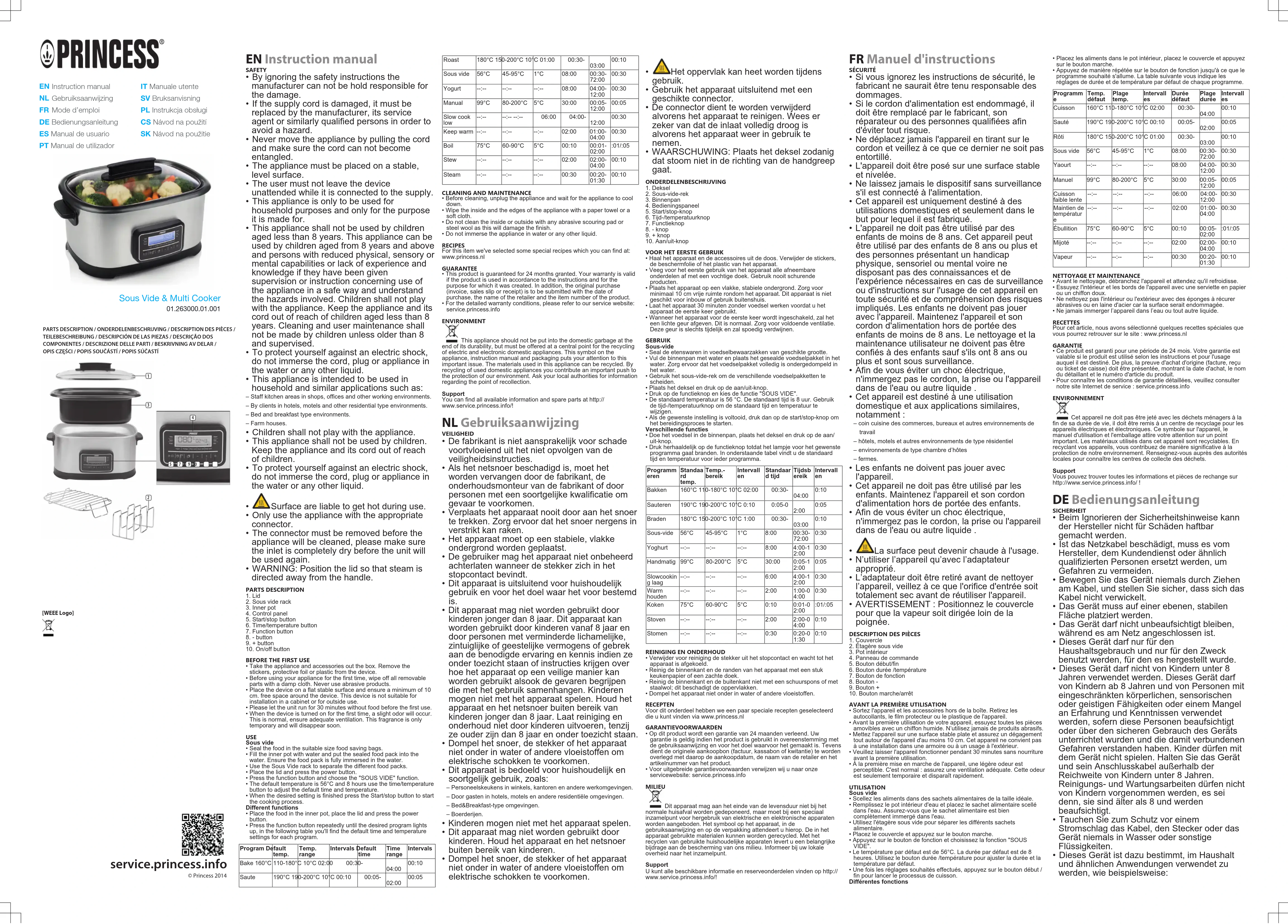 Retrouvez gratuitement la notice de l'appareil 263000 PRINCESS au format PDF.